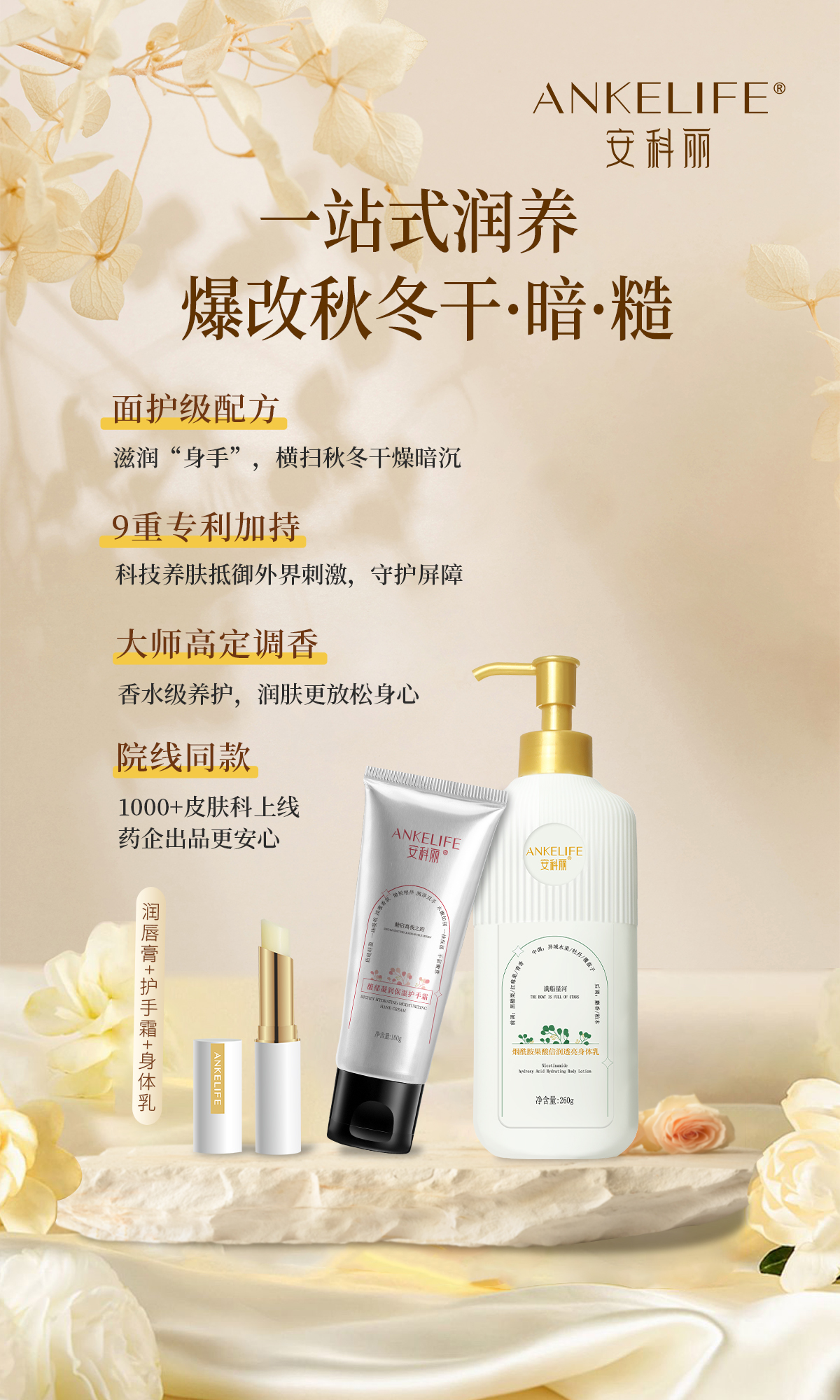 安科丽一站润养套装凝润保湿护手霜烟酰胺果酸倍润透亮身体乳滋润保湿淡纹润唇膏