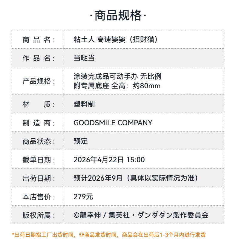 【GSC预售定金】粘土人 高速婆婆(招财猫) 当哒当 附官方限定特典