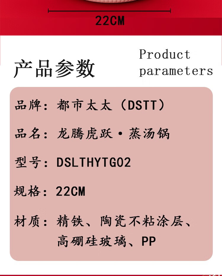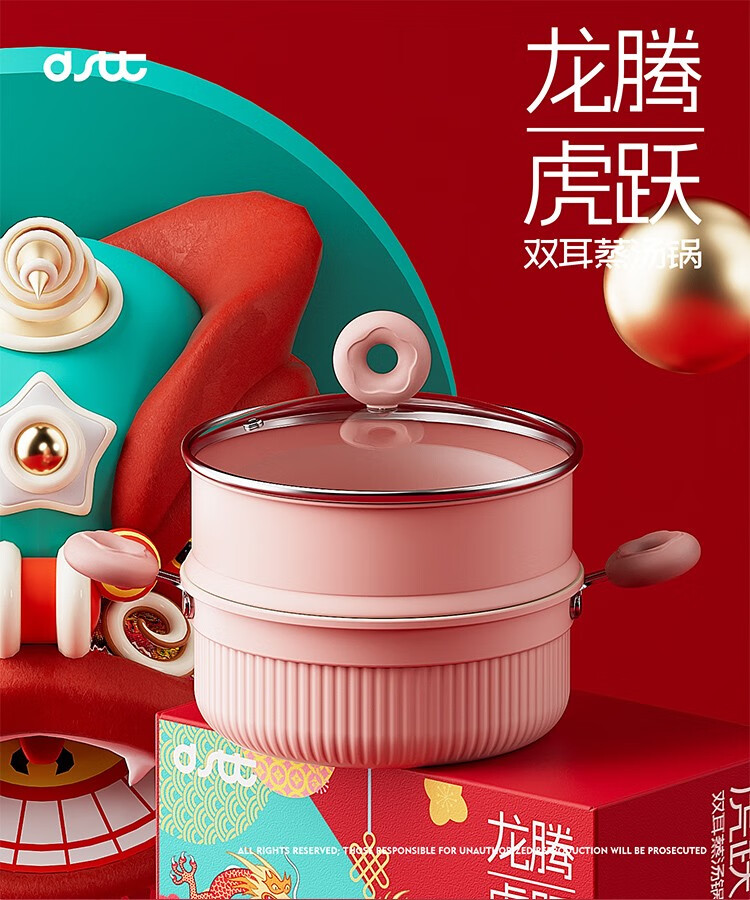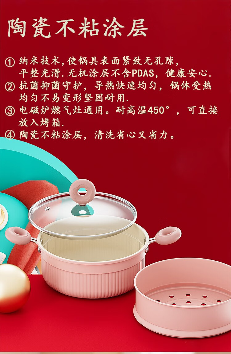 都市太太都市太太龙腾虎跃蒸汤锅陶瓷不粘锅家用多功能双耳防烫煲汤锅