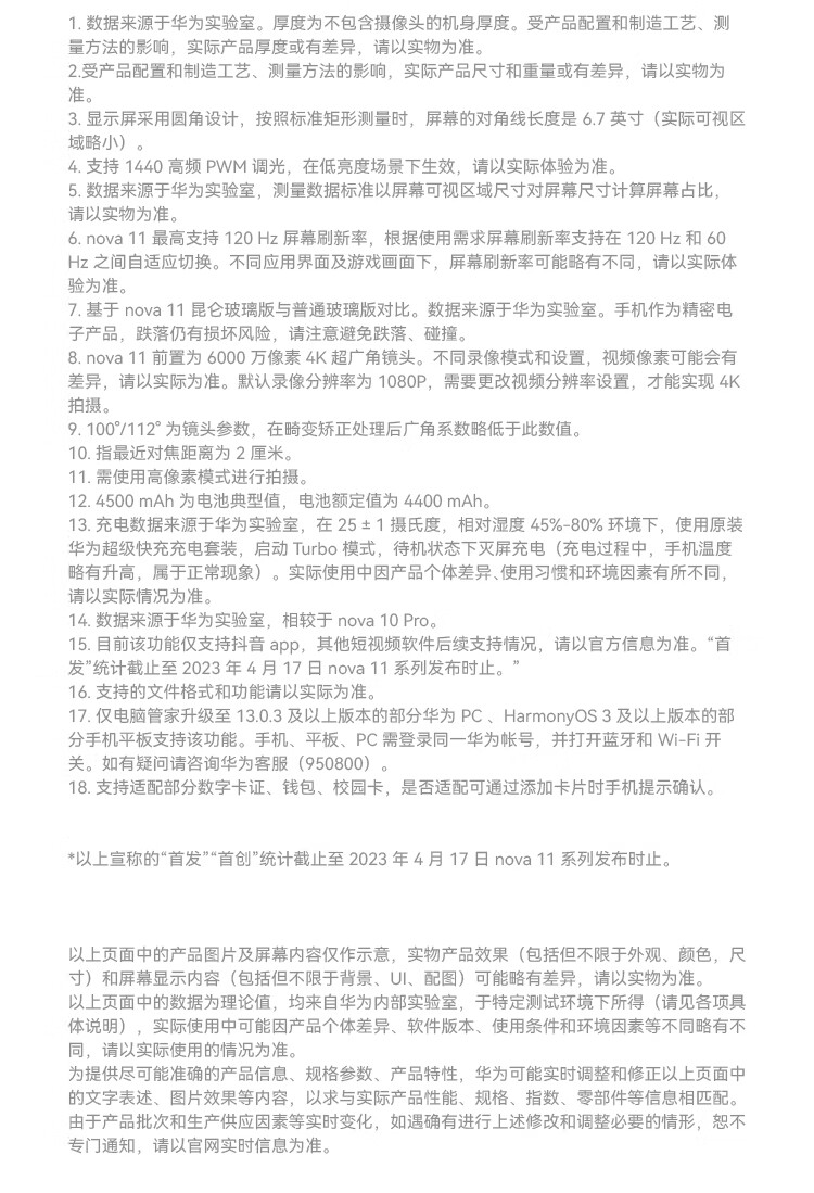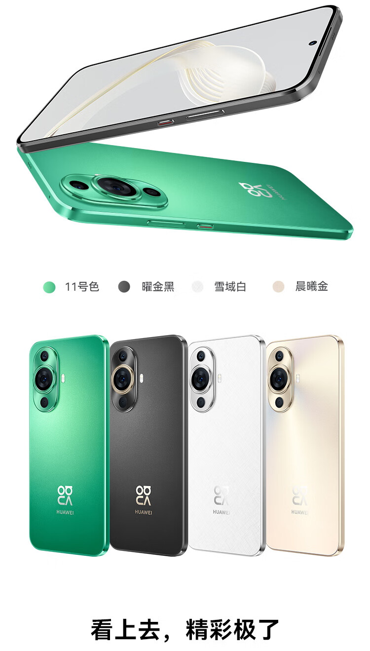 HUAWEI nova 11 前置6000万超广角人像 6.88毫米超薄臻彩直屏 256GB 曜金黑 华为鸿蒙智能手机