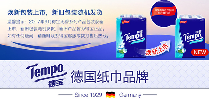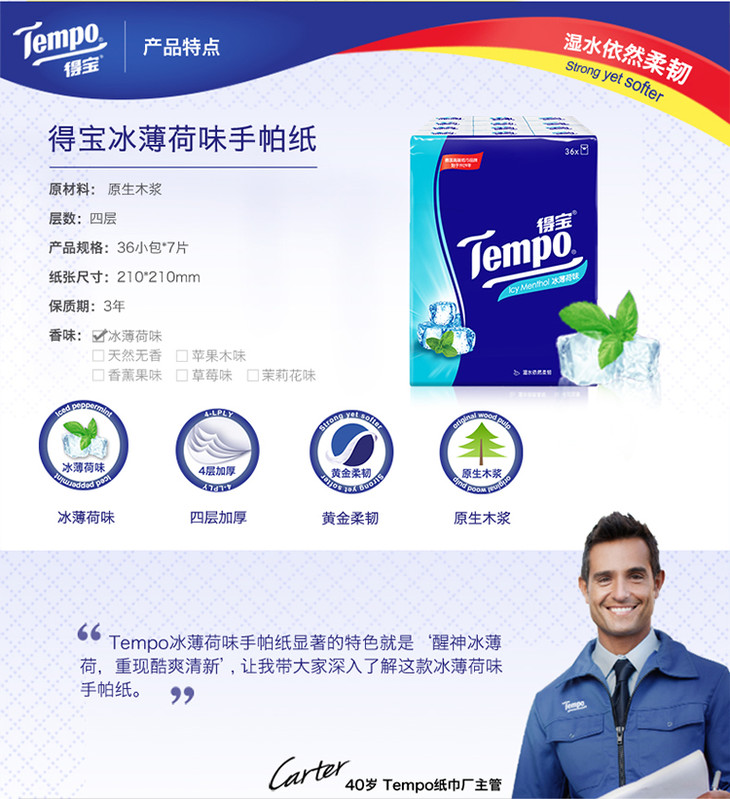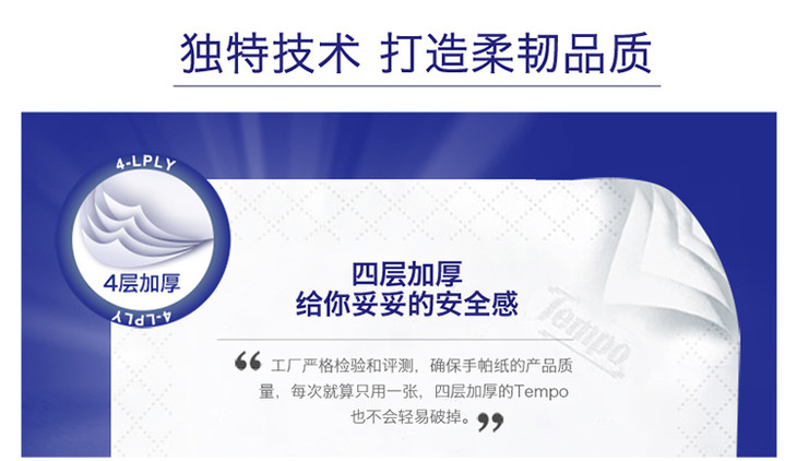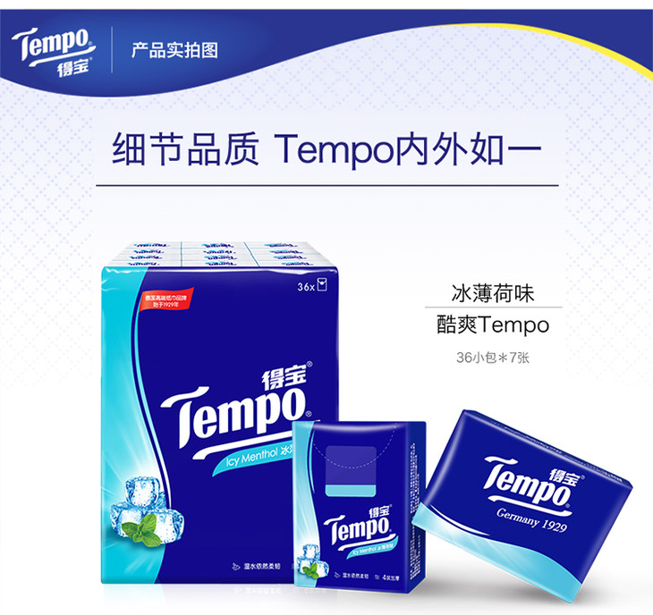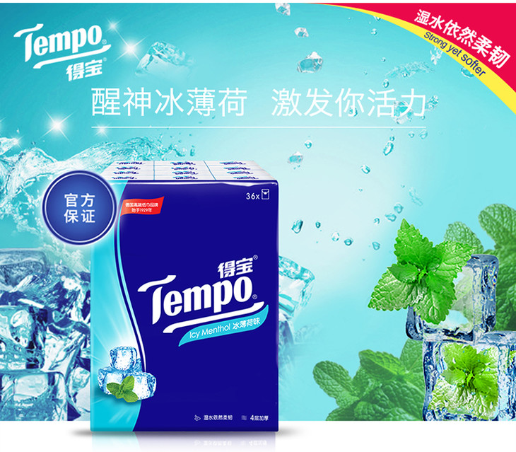Tempo得宝纸巾冰薄荷味手帕纸4层36包纸巾小包便携装手帕纸餐巾纸