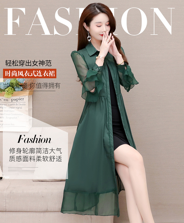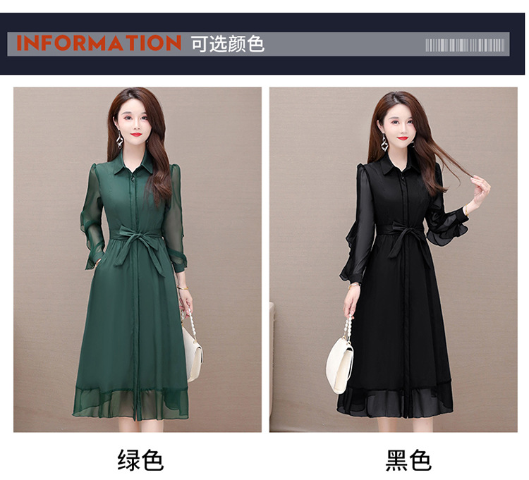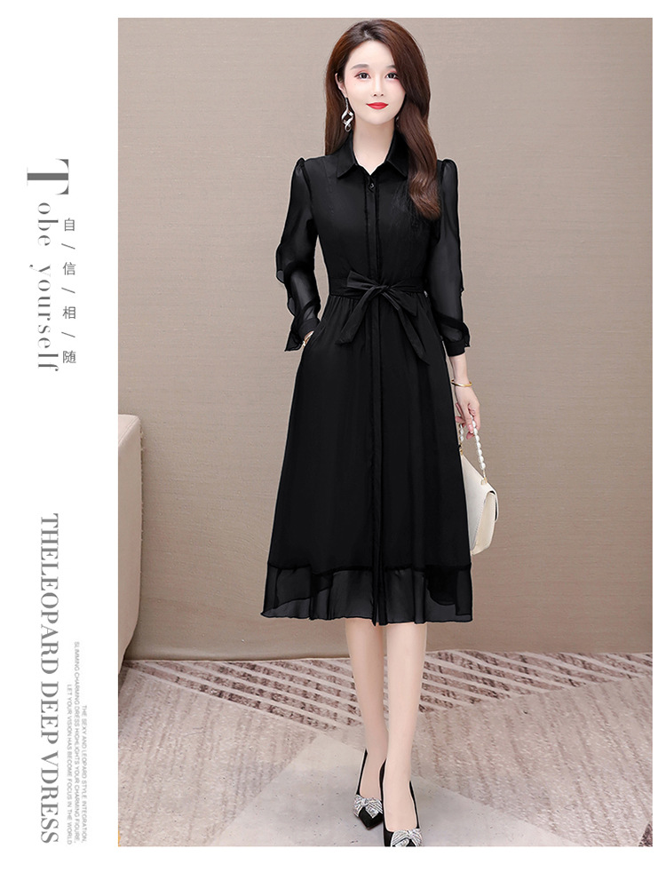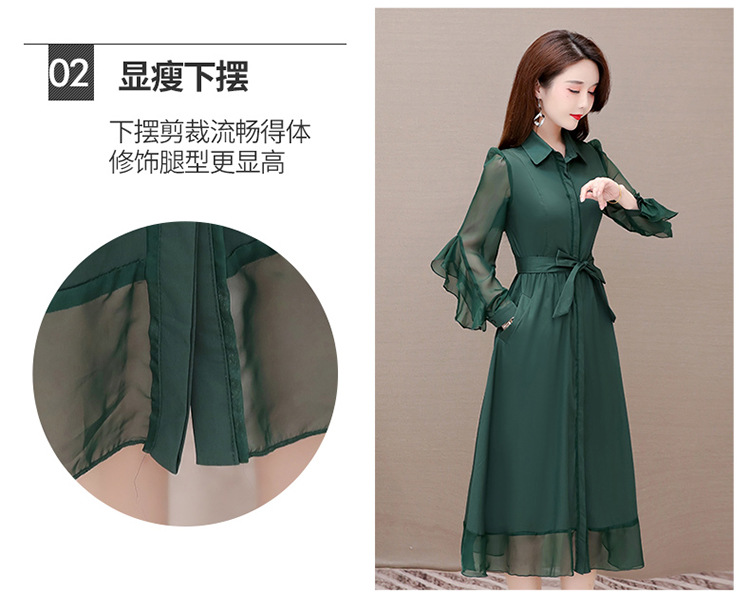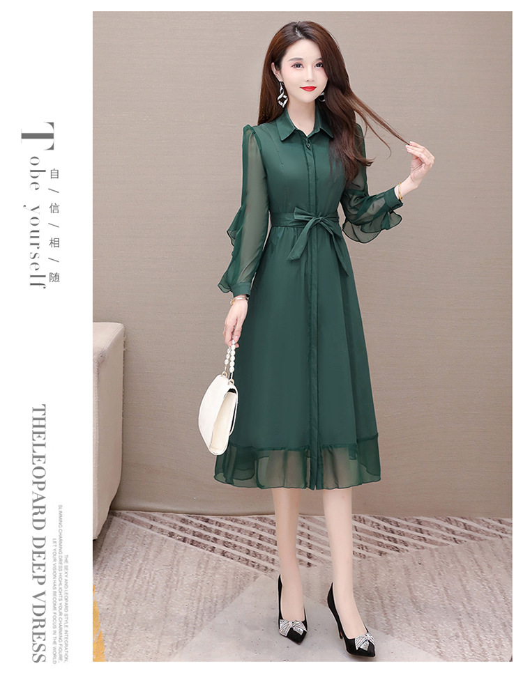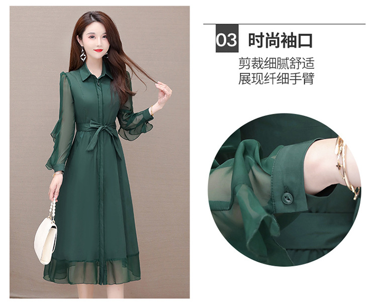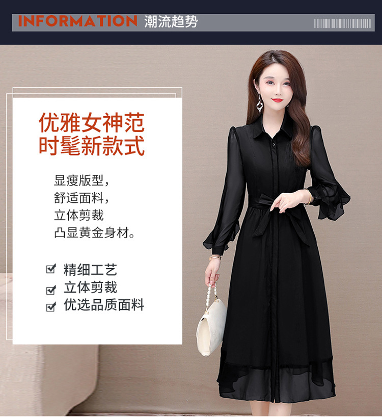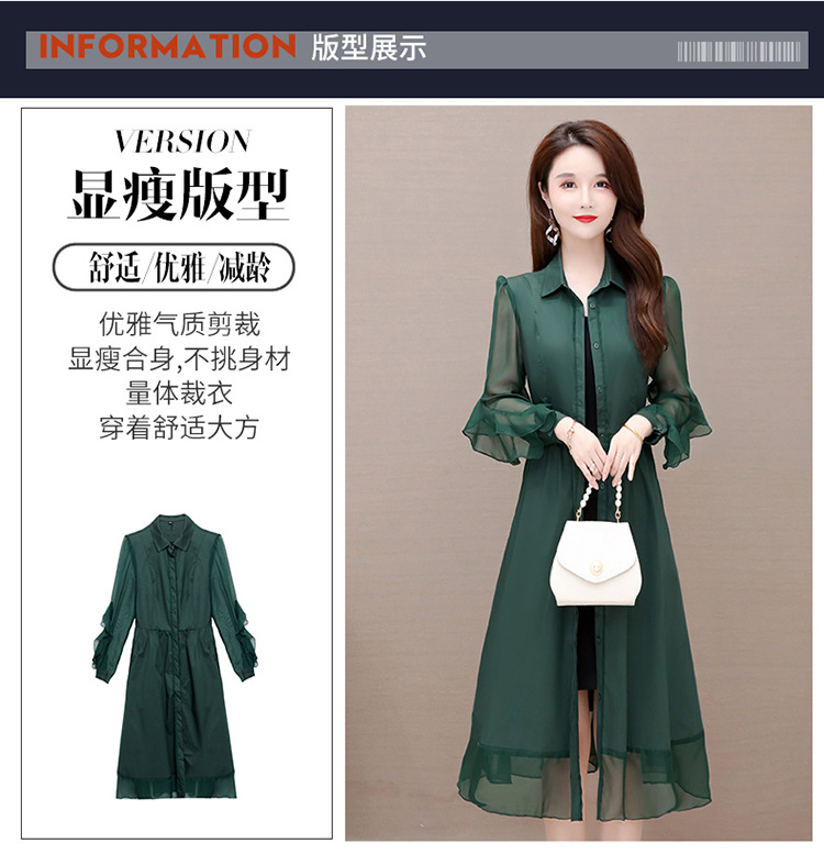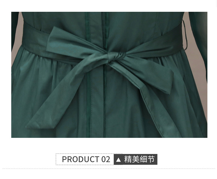 秋季新款,纯色薄款长袖拼结开衫裙中长款腰带裙时尚风衣式连衣裙QYM-JJ-C22803-Y