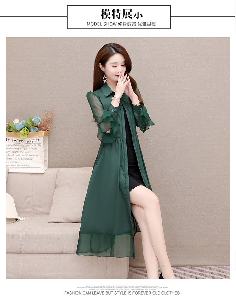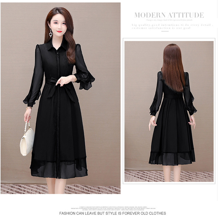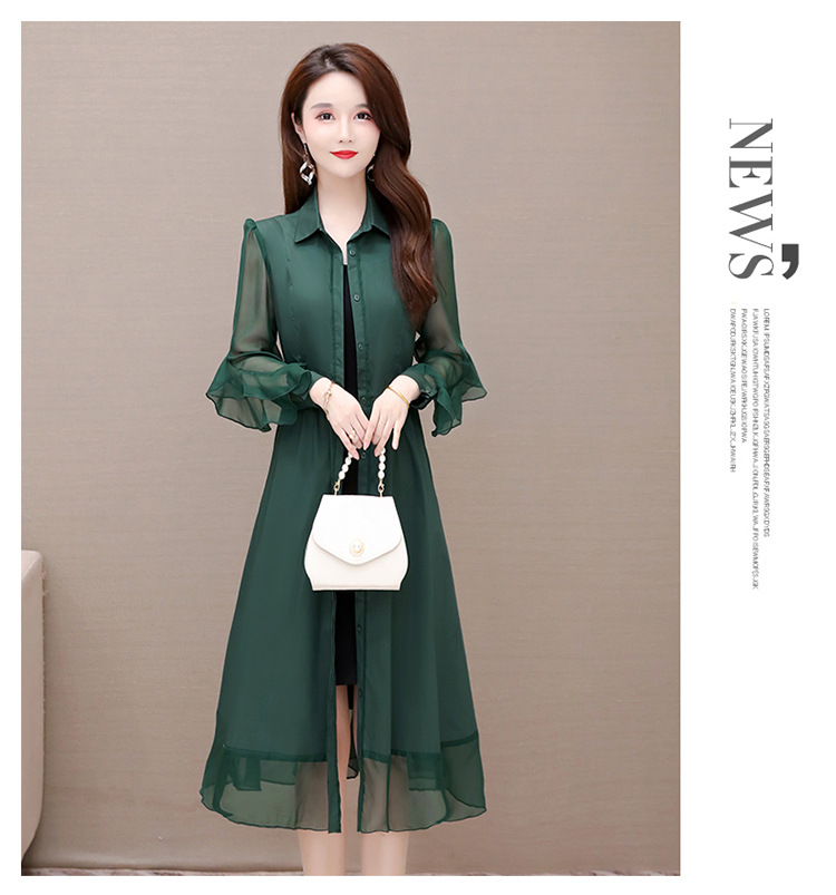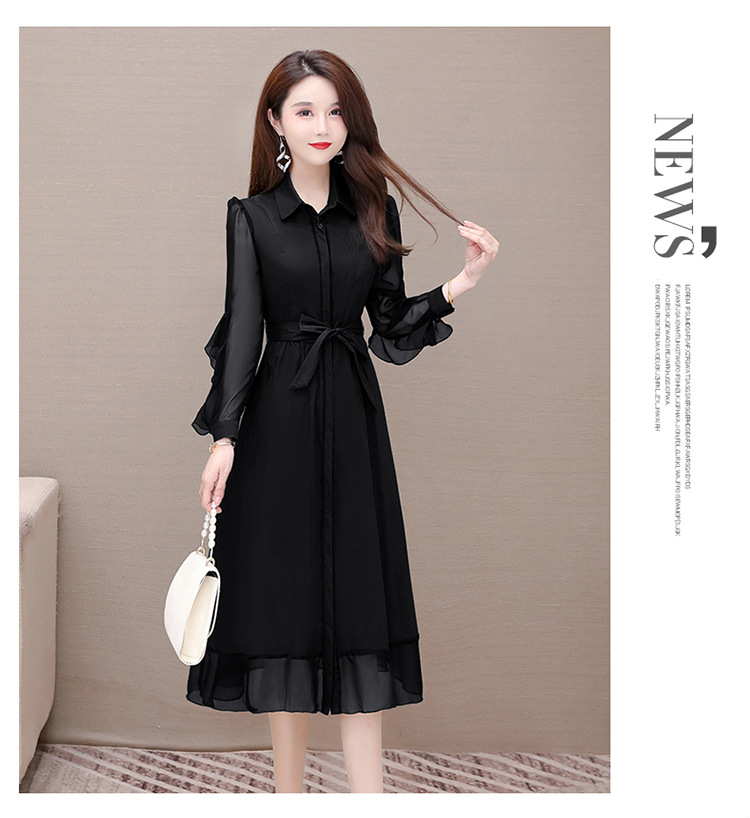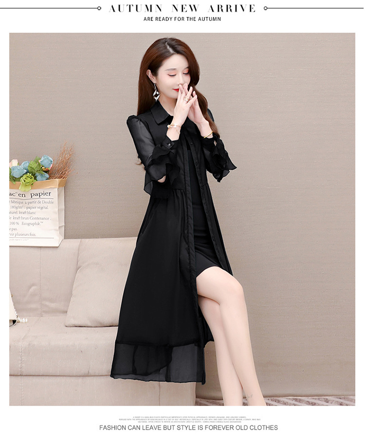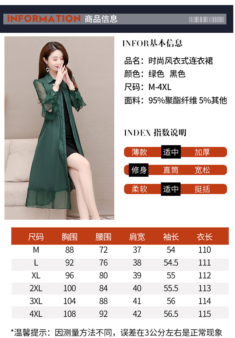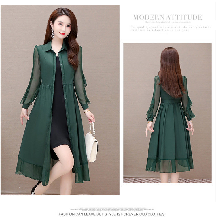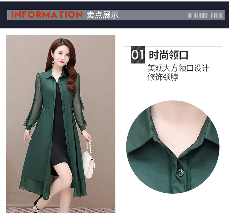 秋季新款,纯色薄款长袖拼结开衫裙中长款腰带裙时尚风衣式连衣裙QYM-JJ-C22803-Y