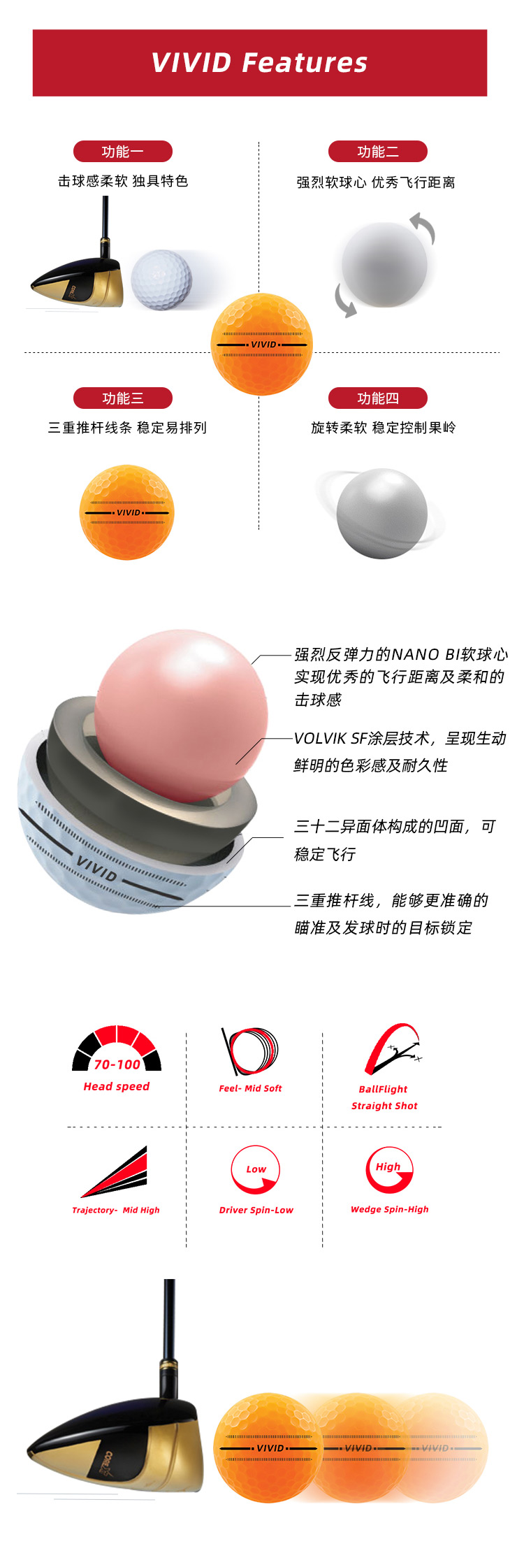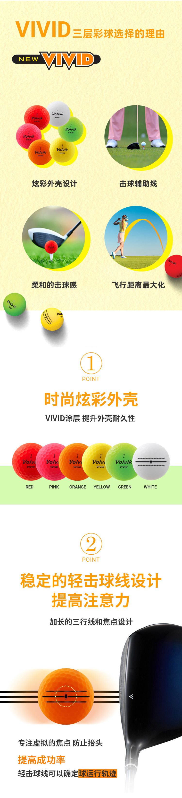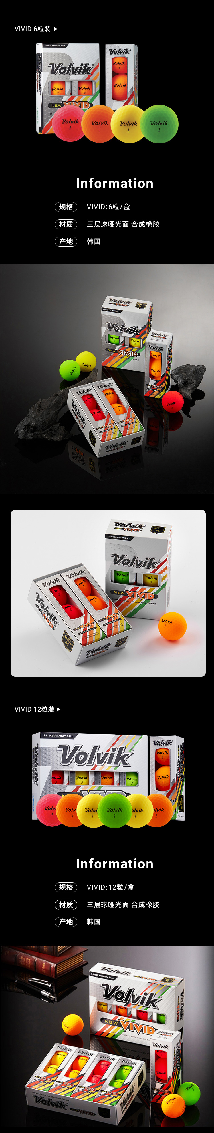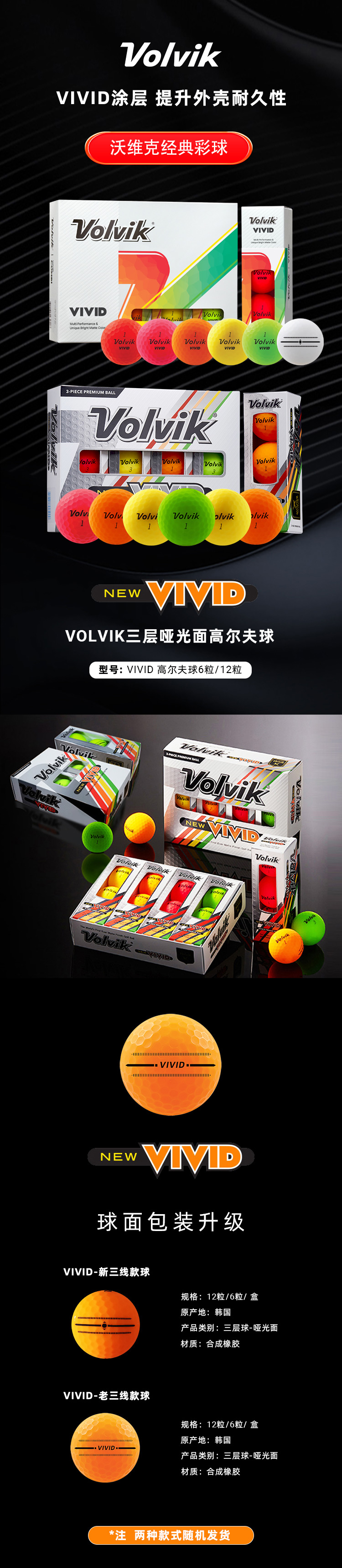 Volvik沃维克高尔夫彩球VS4四层光面球/VIVID COMBI双色哑光三层球/VIVID三层哑光球/VIMAT SOFT两层哑光练习球