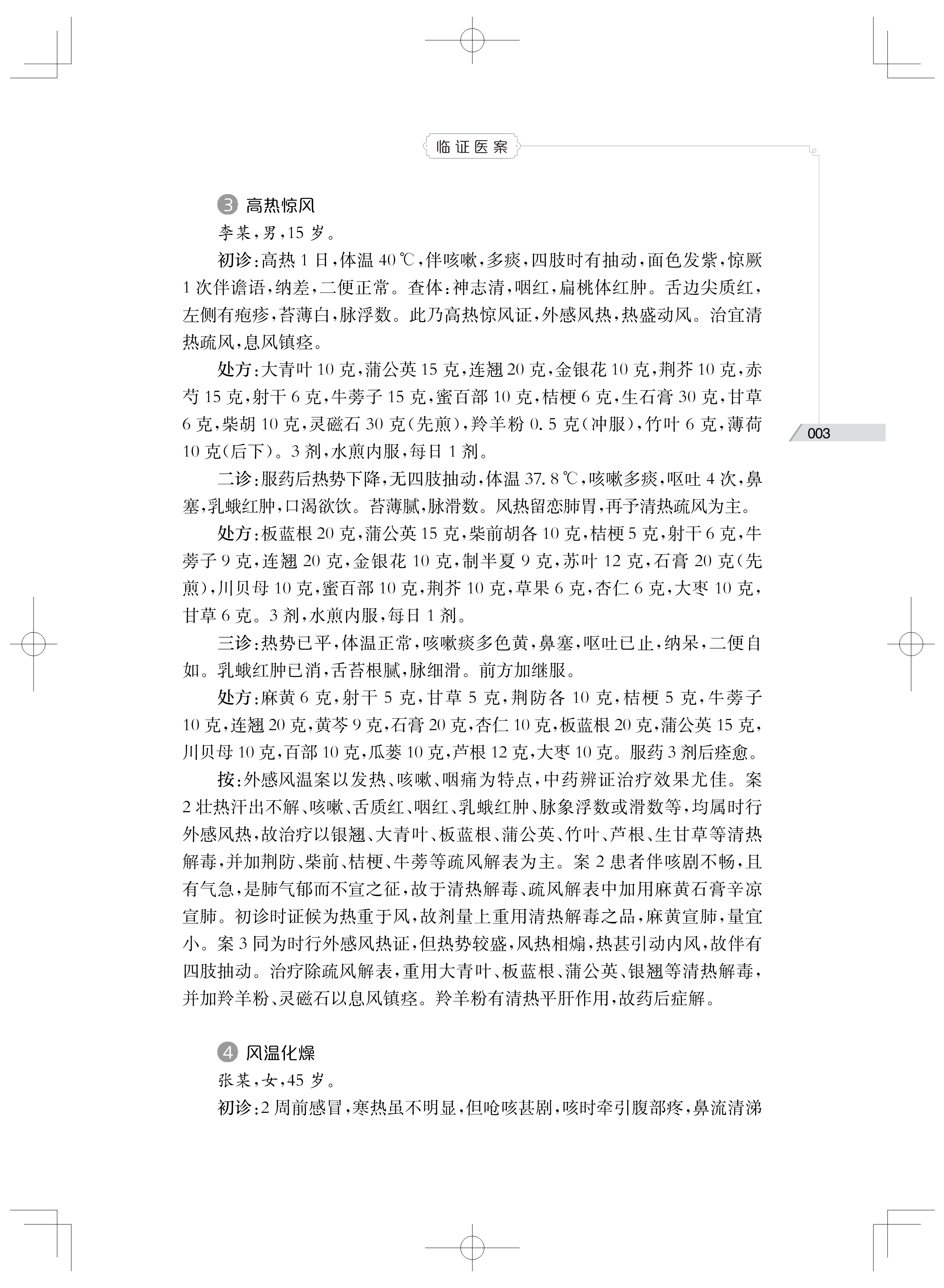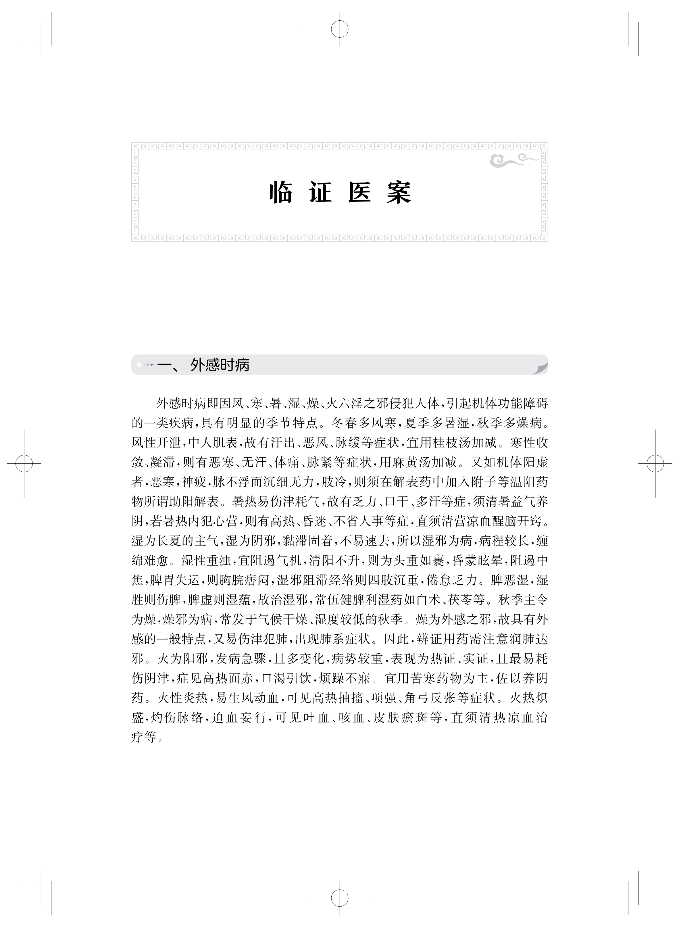 本书选编临床验案约300则,涉及内、外、妇、儿各科,均源于笔者门诊、病房或会诊实录。本书内容精细,从外感时病、肺系疾病、心系疾病、脾胃疾病、肾系疾病、内分泌代谢疾病、风湿病、妇科疾病与疑难杂症九个方面编排,真实呈现余临床 40多年的些许诊治经验。大部分验案之后撰有“质难”和“解惑”的按语,以解析案中诊疗思路、传授处方用药经验技巧等。其中,临证医案外感时病篇辑有17则验案,分风温、风寒、伤寒、寒热错杂病案的辨证诊治,概括了因人、因时中医药治疗外感病的灵活用药技巧,体现了中医治疗外感病的特点和疗效。脾胃疾病篇按中医病名分泄泻、胃脘痛、胁痛、呕吐案60余则,真实记录了余临床治疗脾胃病精准辨证论治过程。余认为脾胃健运以生气血,崇尚李东垣“内伤脾胃,百病由生”之说,临床治病尤当重视脾胃。内分泌代谢疾病篇有消渴和瘿病案40余则,较完整地记录了不同类型、不同主症、不同年龄、不同时间消渴病和瘿病辨证治疗的特点,总结出消渴病清养化浊、酸甘健运的有效治疗方法和用药特色。临证感悟篇记录了余对中医经典论述、经典方剂的一些感悟,并总结出时病治急、慢病治本、辨证论证、精准诊疗的临证心得。医者在临证施治时应辨病准确,辨疑不惑,治难不乱,才能用药中的,临床获效。