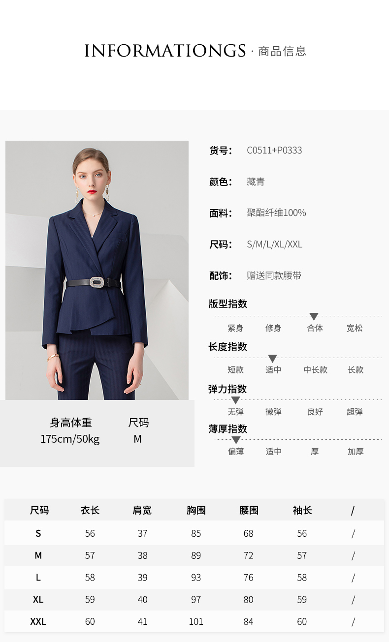 IWY/藏青色长袖西装长裤套装C0511+P0333