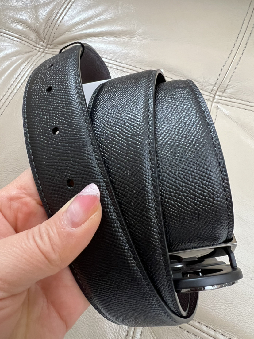 双面调可式Gancini腰带,带采身制进口面双垂纹牛皮宽,度3.5cm,长度自可由裁剪,双八层字钢,扣原厂进口备设电镀工艺上色。