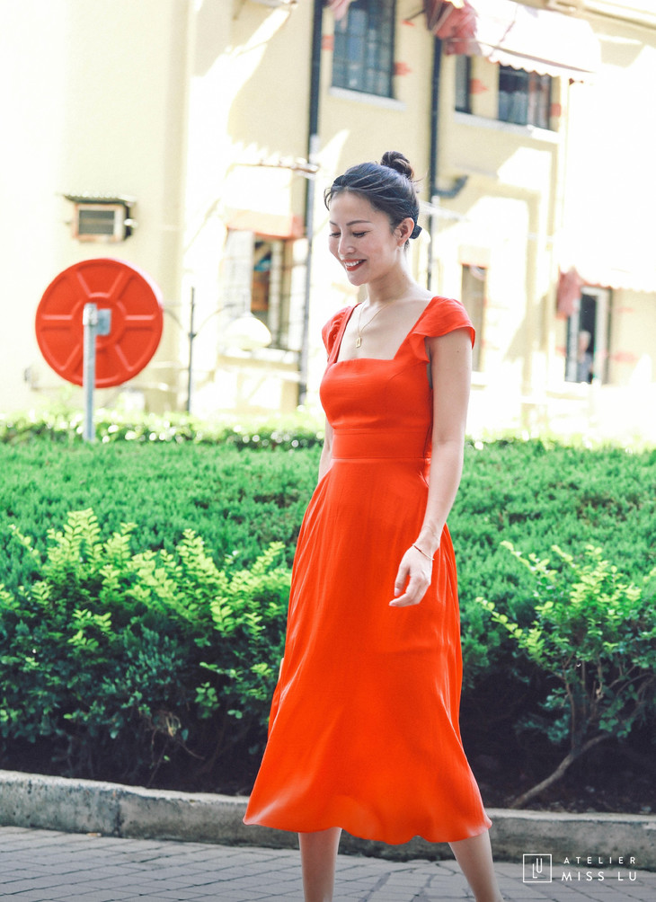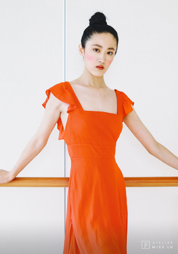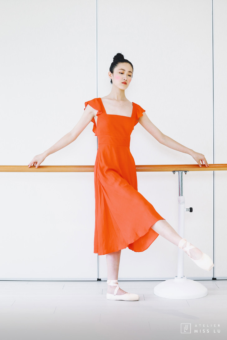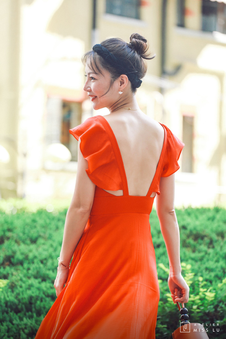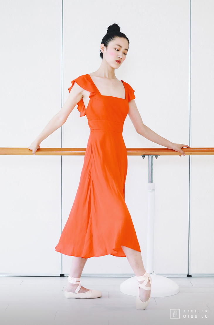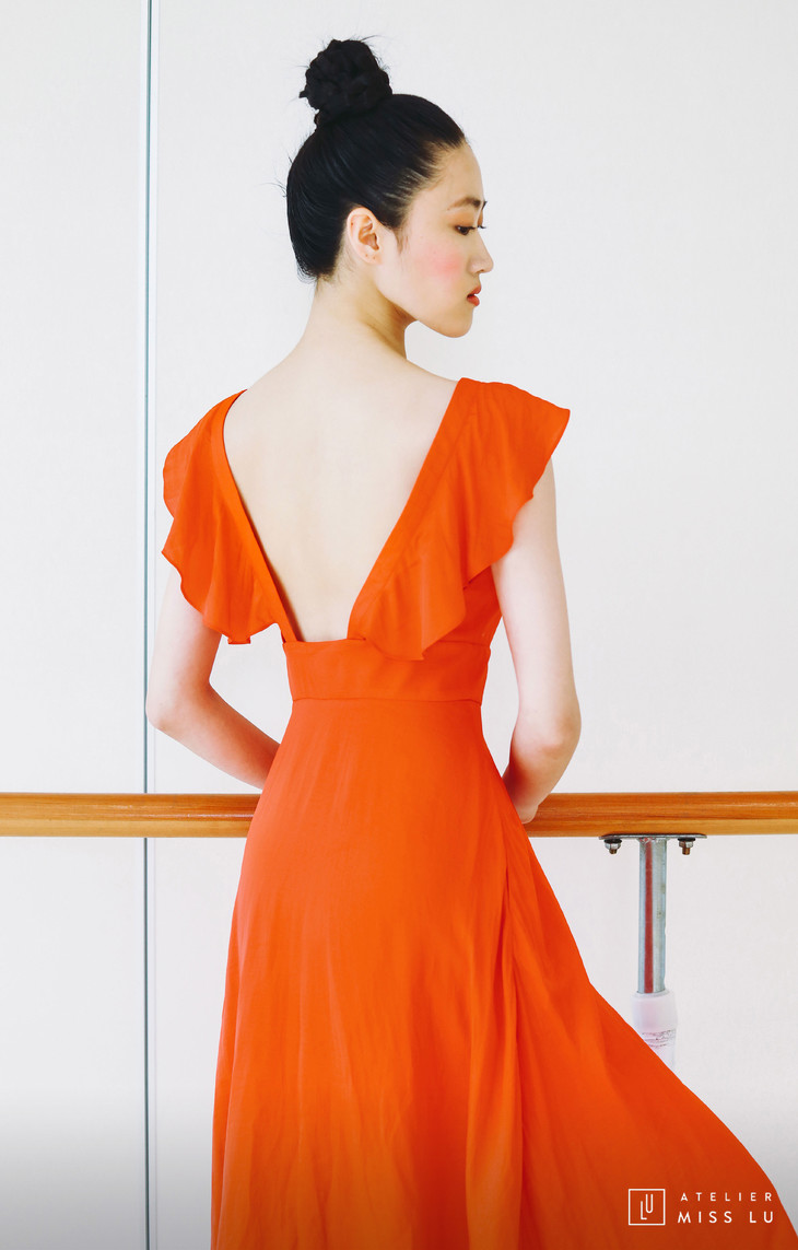 AtelierMissLu / Carina-探戈红荷花袖方领露背裙