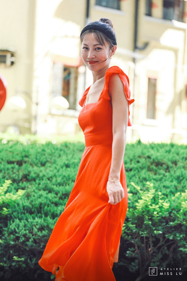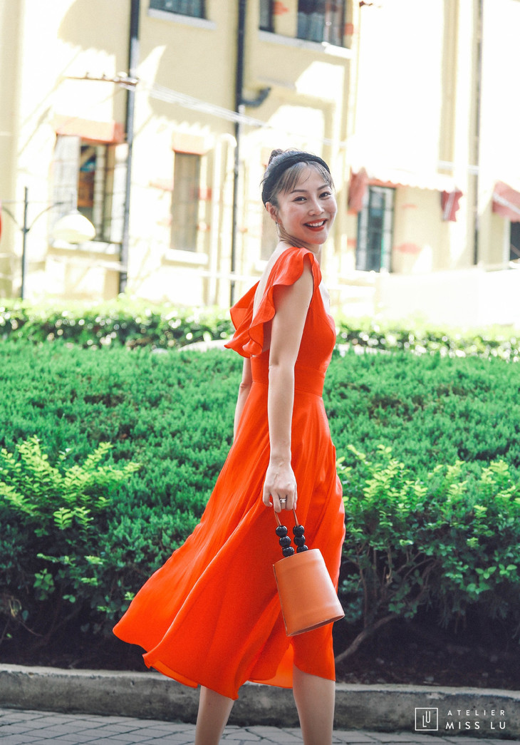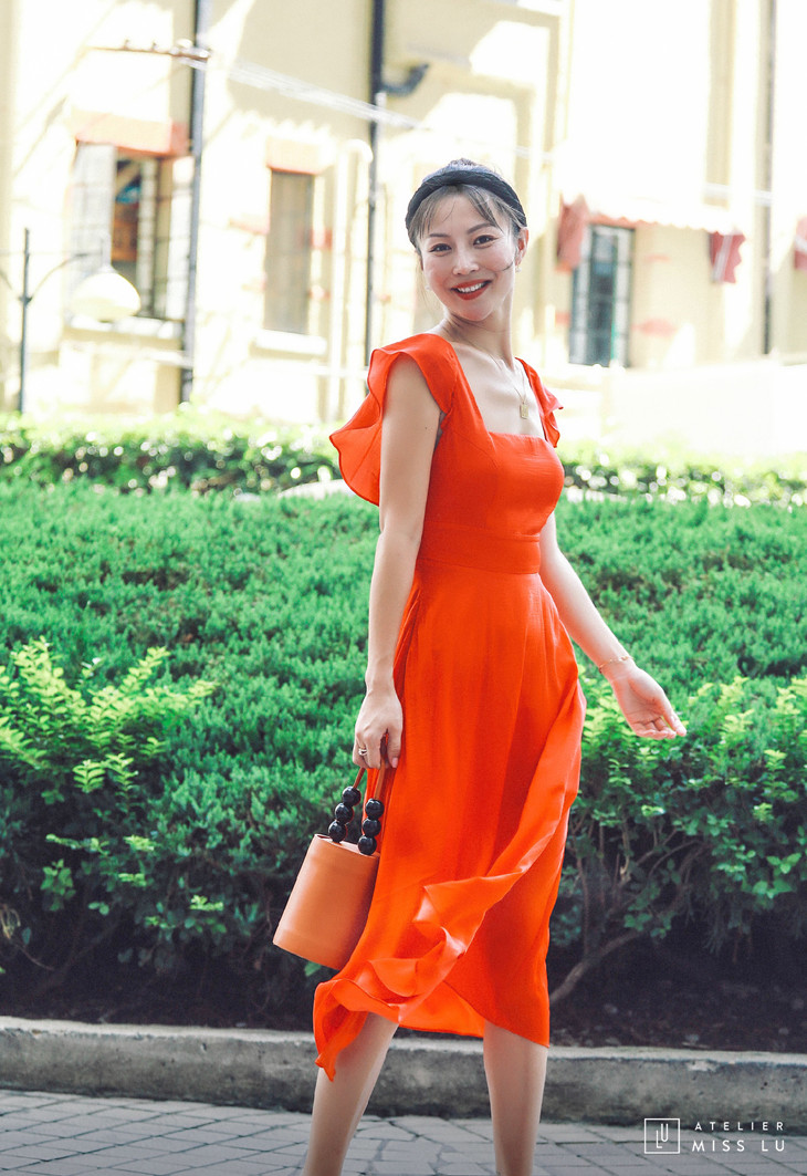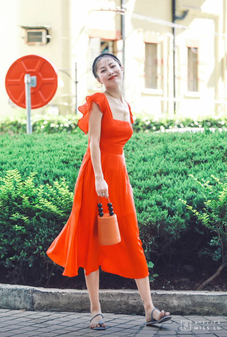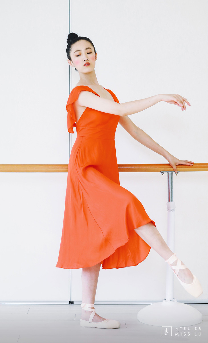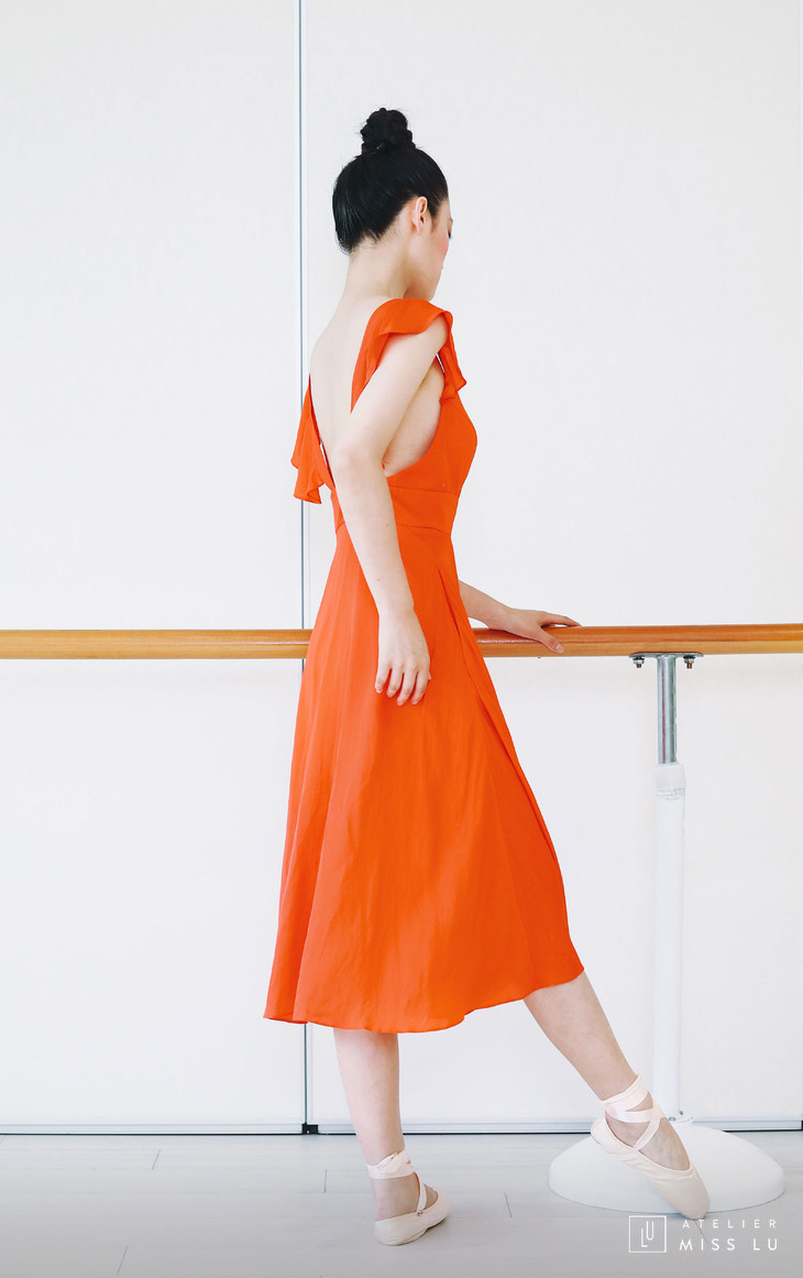 AtelierMissLu / Carina-探戈红荷花袖方领露背裙