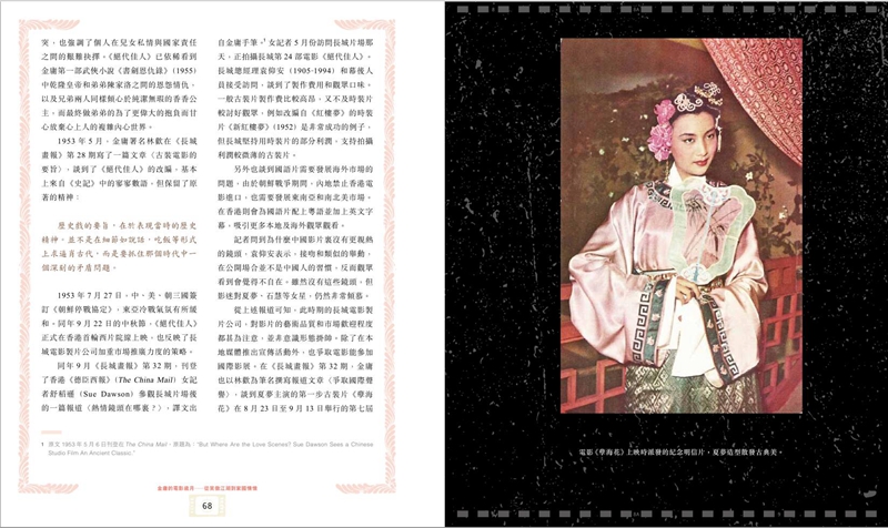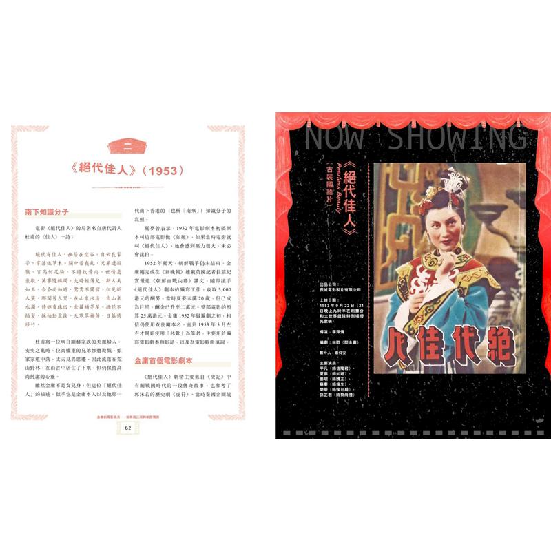 本書透過搜羅及分析與1950 至1960 年代「金庸電影歲月」相關文獻,包括電影特刊、戲橋、劇照、報章宣傳廣告等珍貴資料,展現金庸在電影歲月中所作出的重大貢獻。書中分析了多部金庸編劇、導演的電影,以及早期根據他的小說改編拍攝的粵語武俠片。作者也探討金庸編劇電影的特色、創作動機,以及金庸如何對香港和全球華人世界的流行文化發展產生深遠的影響。本書圖文並茂,讀者可從書中認識到金庸作為影評人、編劇、導演的成就,也讓人了解到這段電影歲月對他成為成功小說家和報人的重要啟迪。