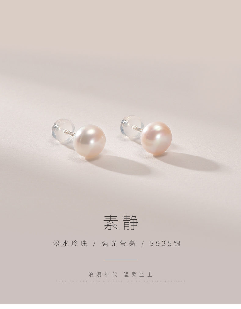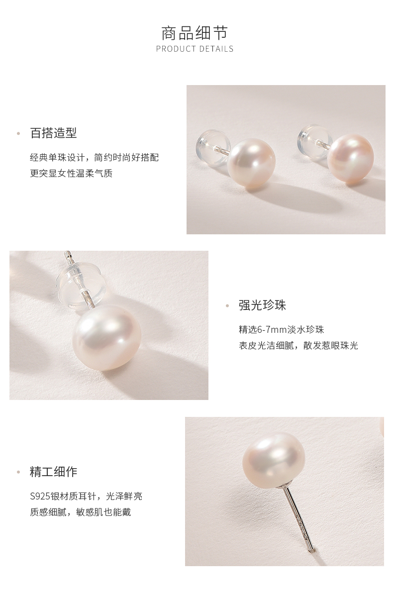 【品牌优选】京润珍珠 S925银 馒头形淡水珍珠耳钉 【福利品—绒布袋包装】MS