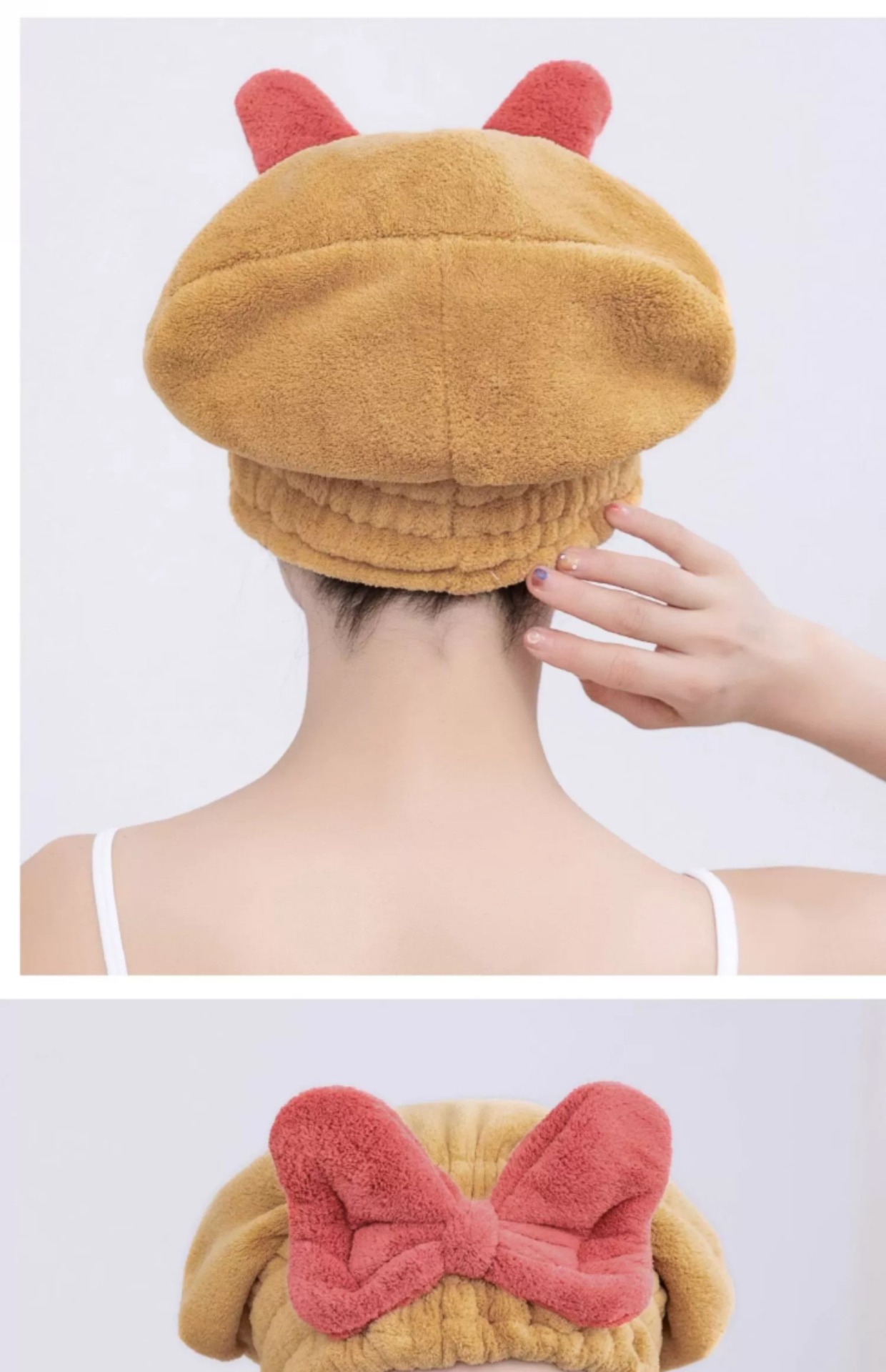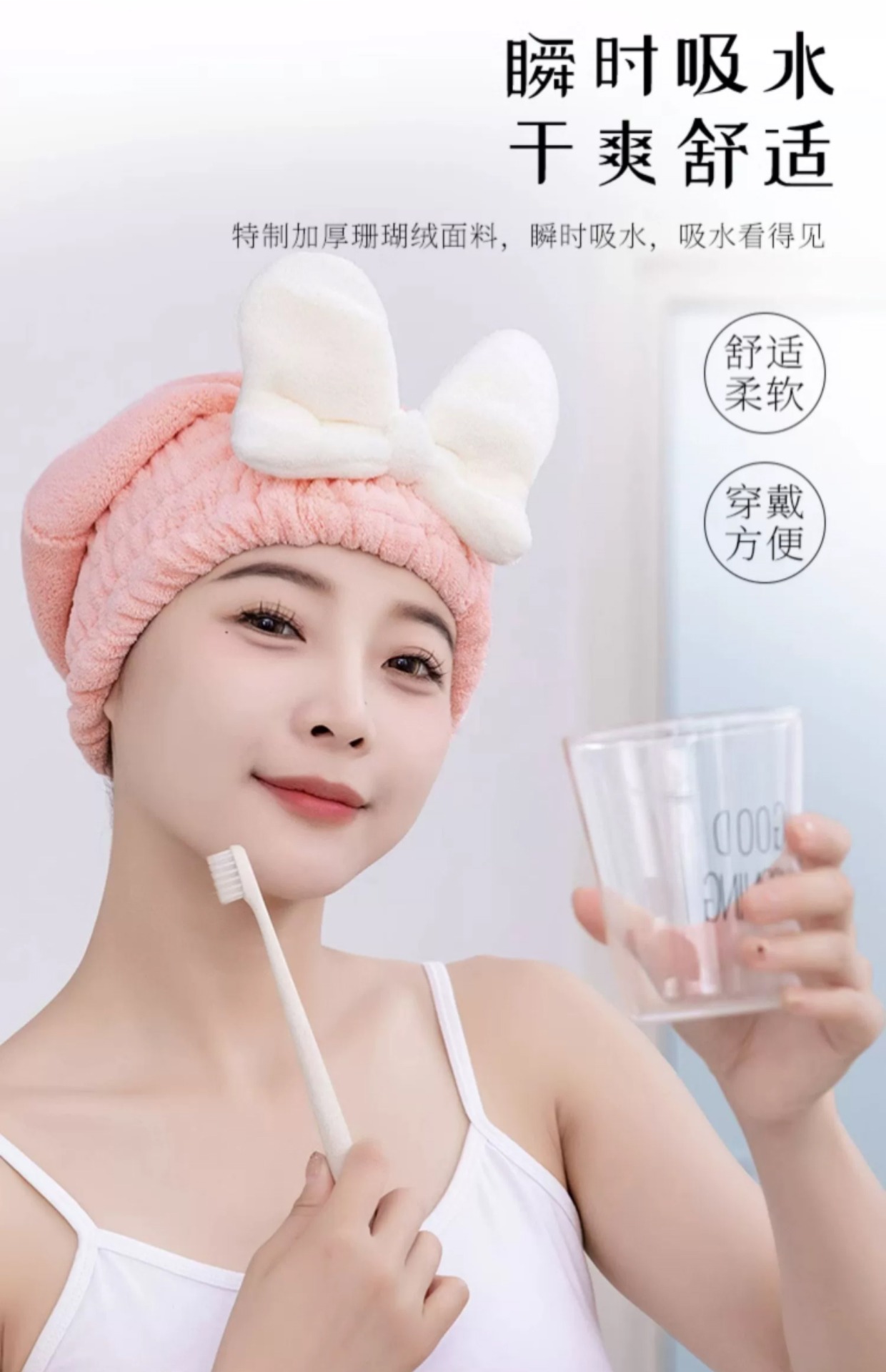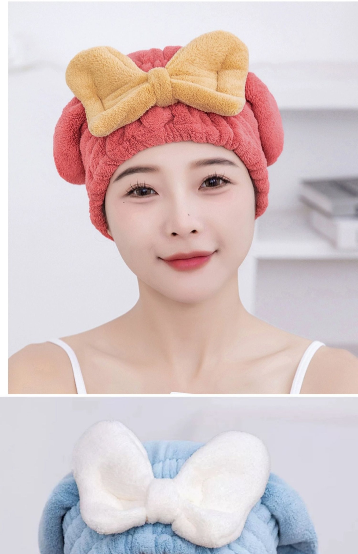 【瞬时吸水!轻松干发】亲肤柔软,弹力松紧设计,轻松裹发,新款干发帽超强吸水速干帽蝴蝶结新款可爱干发巾洗头发浴帽女包头巾。rb