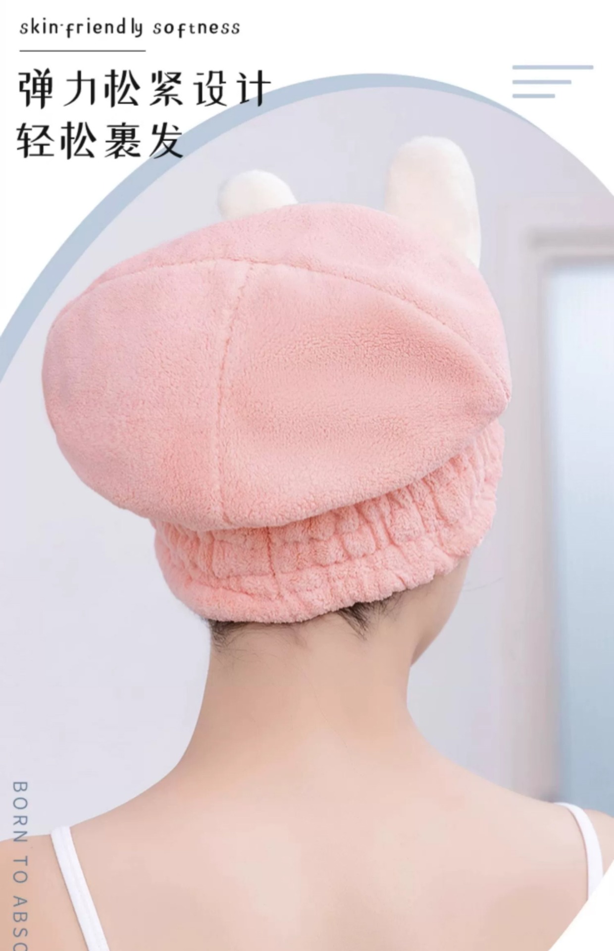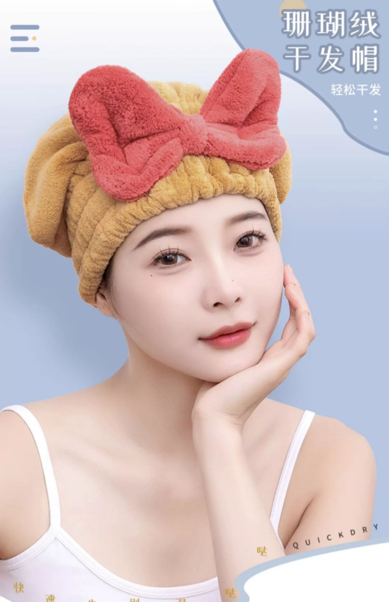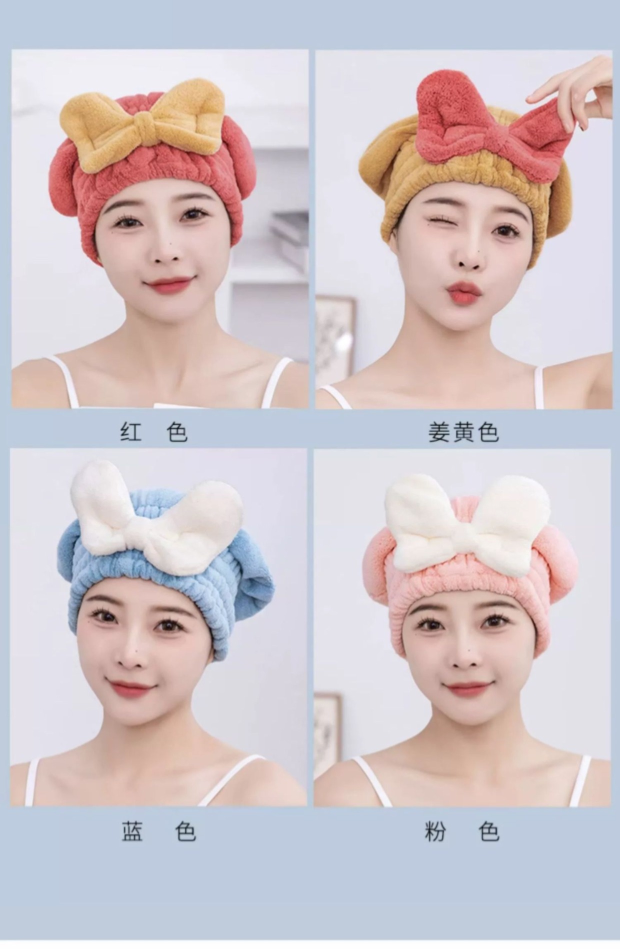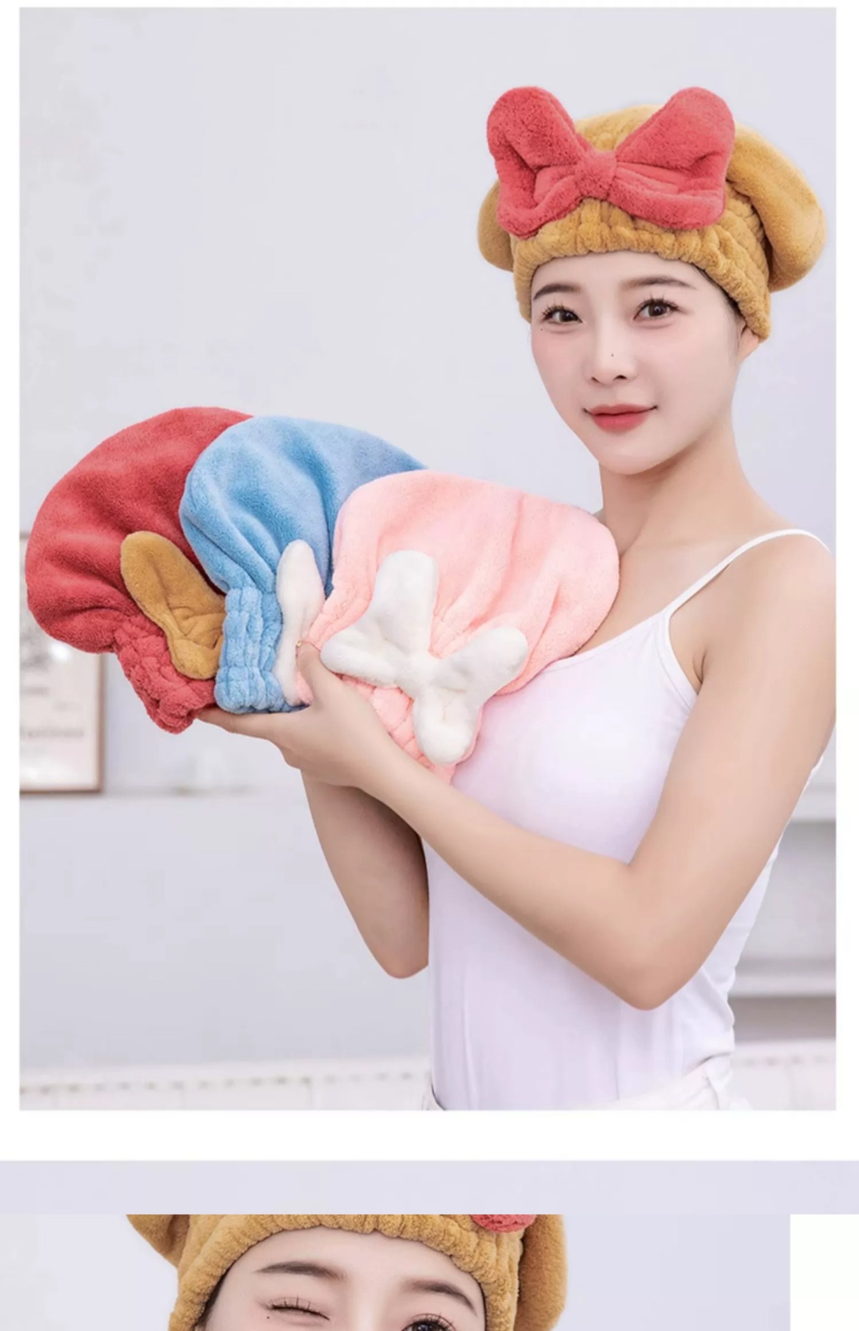 【瞬时吸水!轻松干发】亲肤柔软,弹力松紧设计,轻松裹发,新款干发帽超强吸水速干帽蝴蝶结新款可爱干发巾洗头发浴帽女包头巾。rb