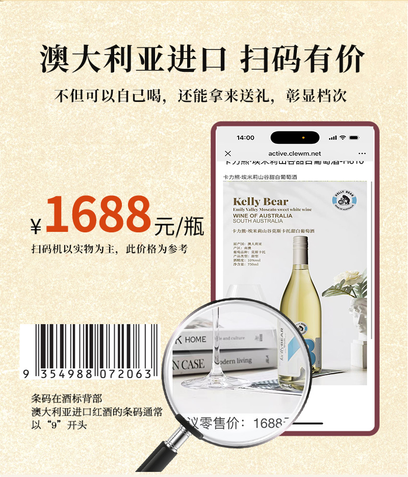 疯抢中!!【春节不打烊】【送新年手提礼袋】【澳大利亚原瓶进口】卡力熊·埃米莉山谷莫斯卡托甜白葡萄酒 10%vol 甜型