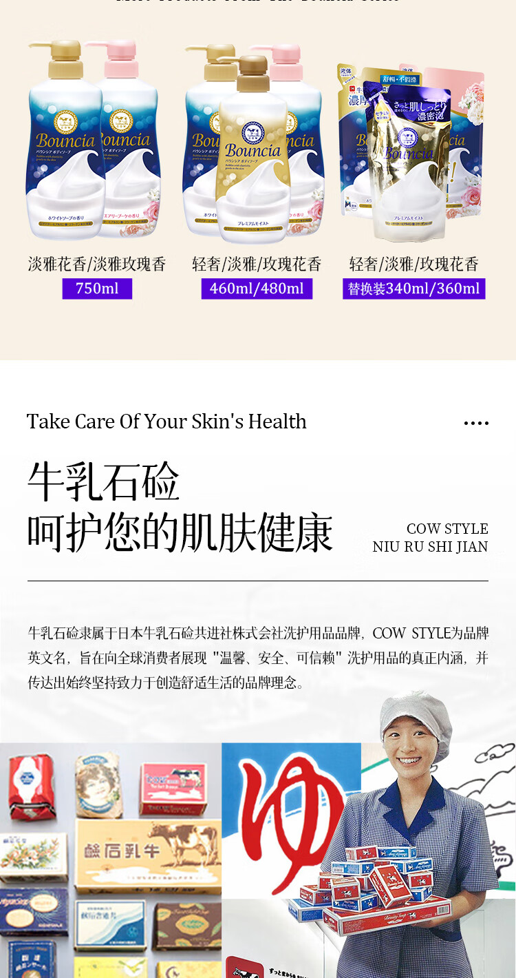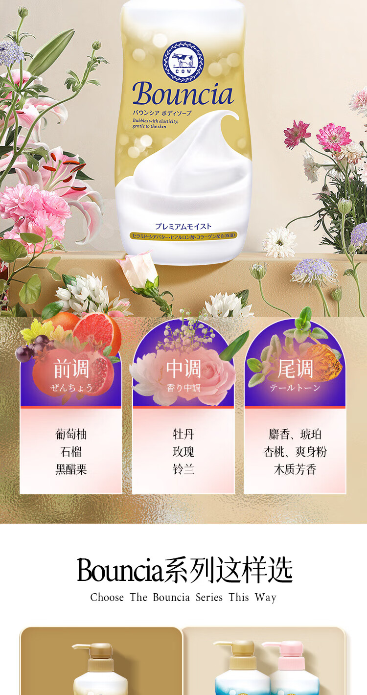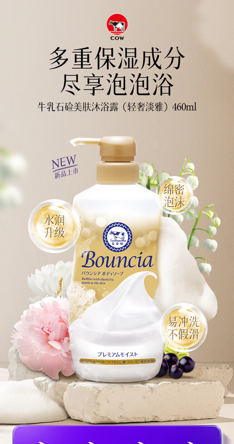 日本原装进口牛乳石硷美肤沐浴露(轻奢淡雅花香)460ml
