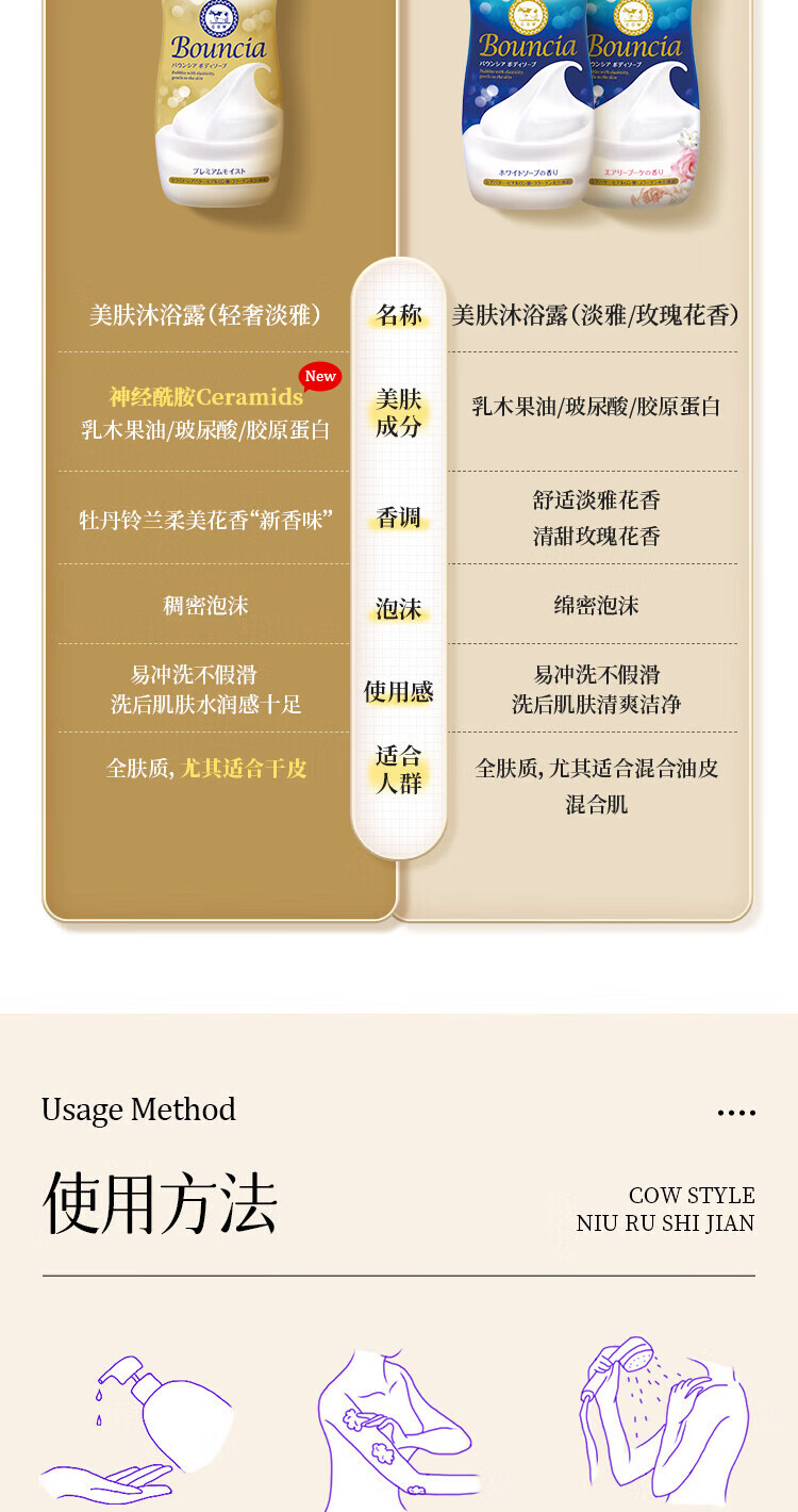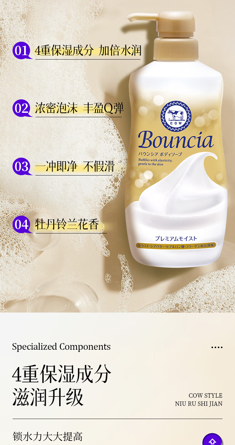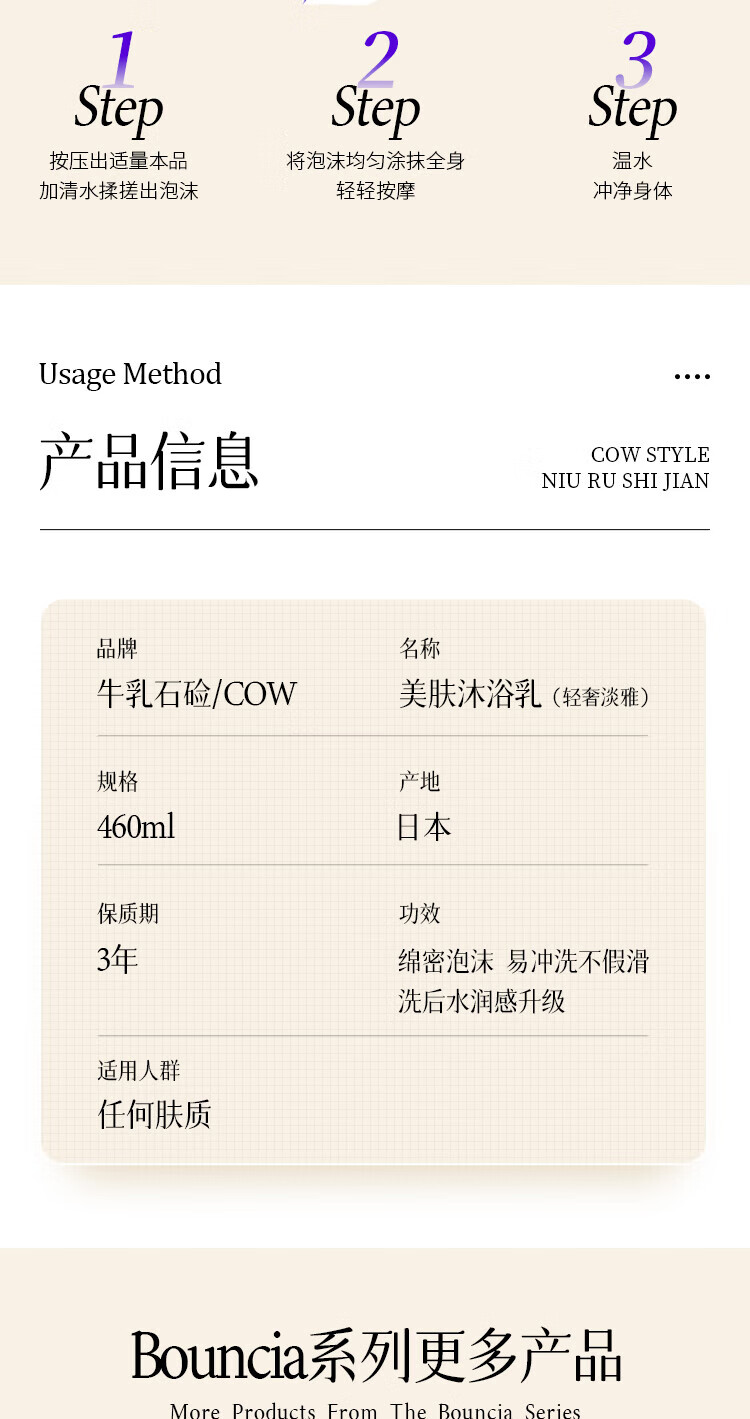 日本原装进口牛乳石硷美肤沐浴露(轻奢淡雅花香)460ml