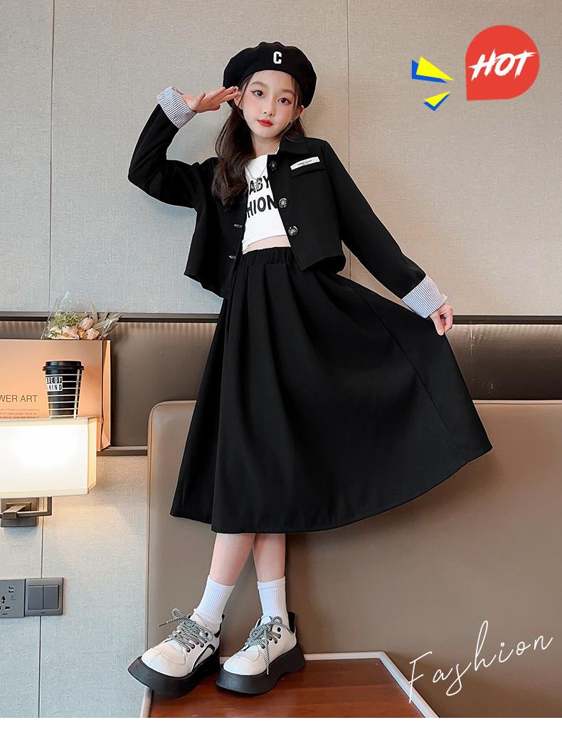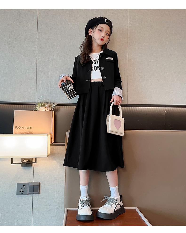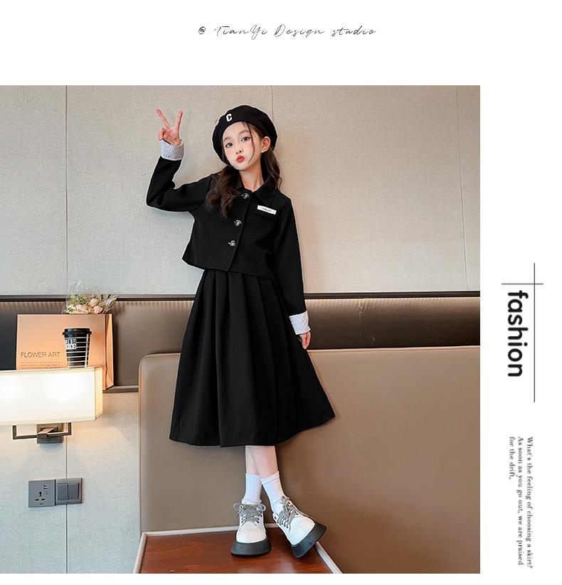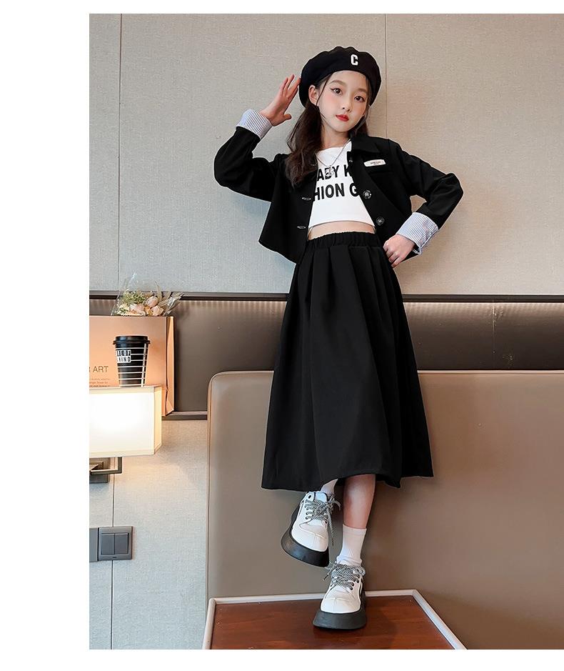 女童秋装套装时髦新款中大儿童韩系西装外套洋气半身裙两件套童装