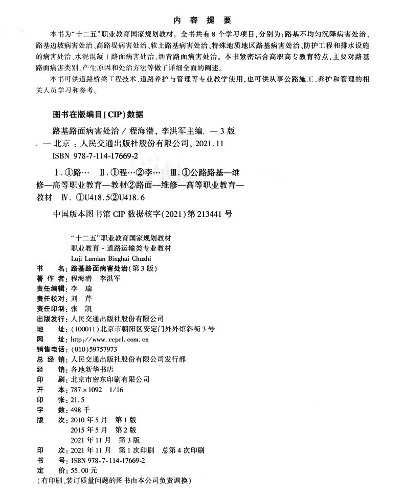 路基路面病害处治(第3版) 十四五职业教育国家规划教材 人民交通出版社