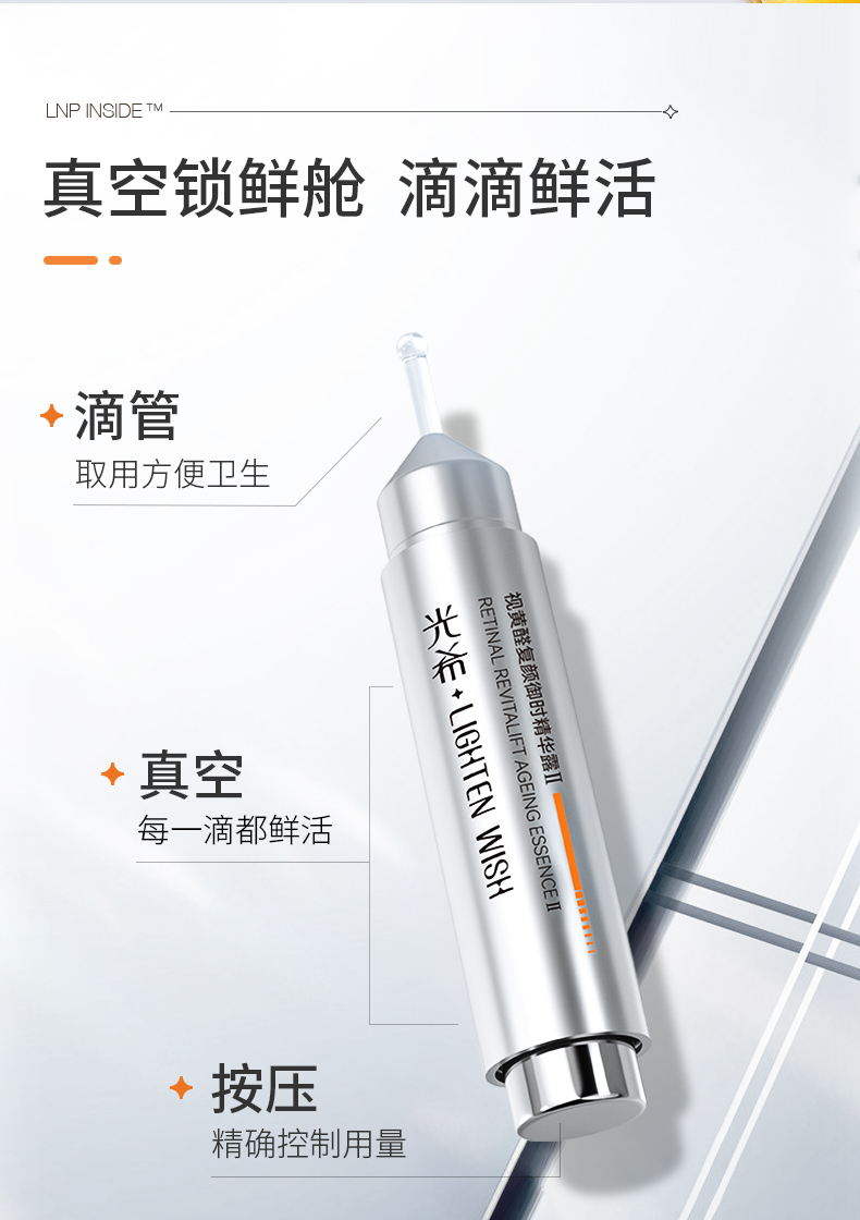 - 护肤新理念,吸收是关键。光希Lightenwish,科技护肤领先者。脂质体纳米微球,活性成分透皮吸收,直达肌底高效养肤。遇见光希,封存美丽。