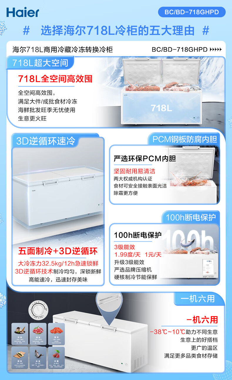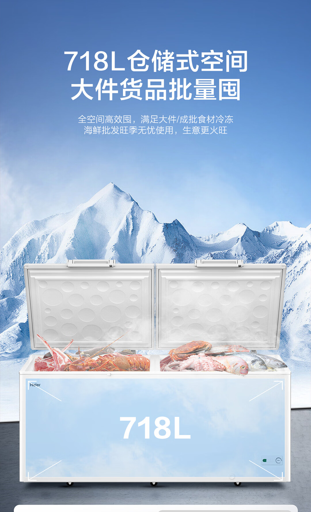海尔(Haier)718升卧式商用家用冰柜 商用大容量冷藏柜大冷冻柜冰柜家用大冷柜BC/BD-718GHEPD JD