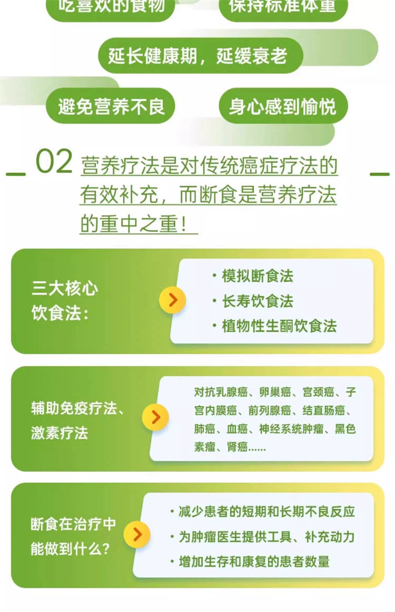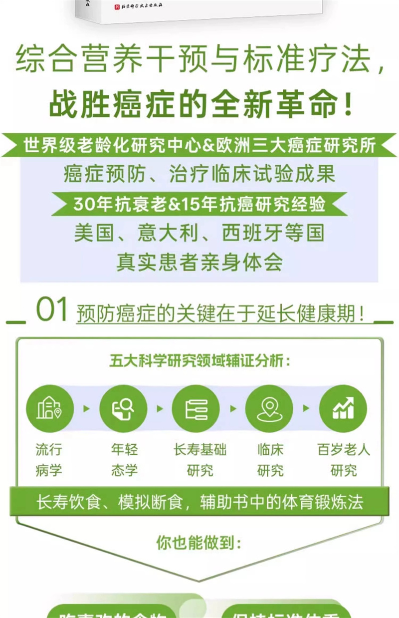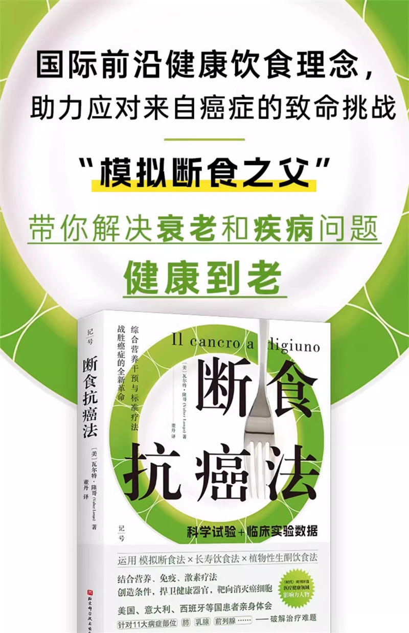 肿瘤是一种复杂的疾病,肿瘤细胞通常不遵循可预测的过程,但它们有一个共同点:是由“混乱和叛逆”的细胞组成的。这些细胞比健康的细胞需要更多的能源,*是当它们受到标准疗法的攻击时。隆哥教授分析了数十年基础和临床研究的数据,这些数据表明,控制饮食、断食和长寿的饮食方式是有助于预防、战胜癌症疾病的,因为它切断了对患病的细胞提供营养。“断食抗癌”开辟了一条新的道路,在这条道路上,即使是患者也可以成为自己护理和治疗的积极角色。