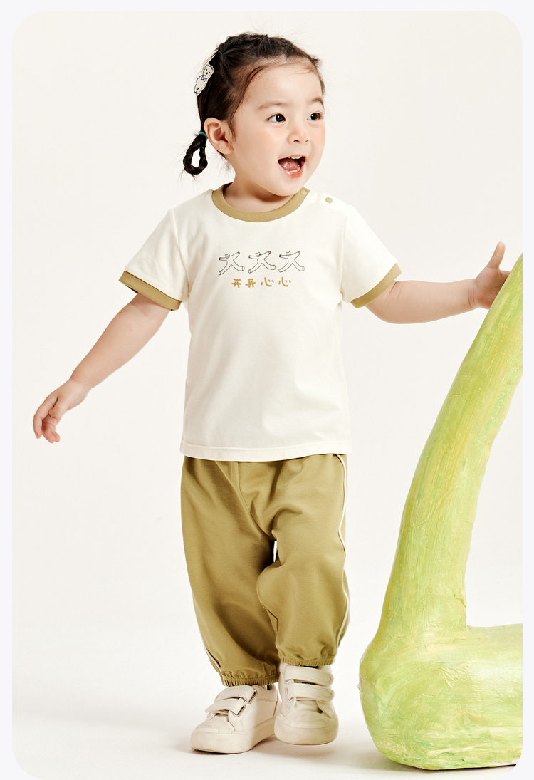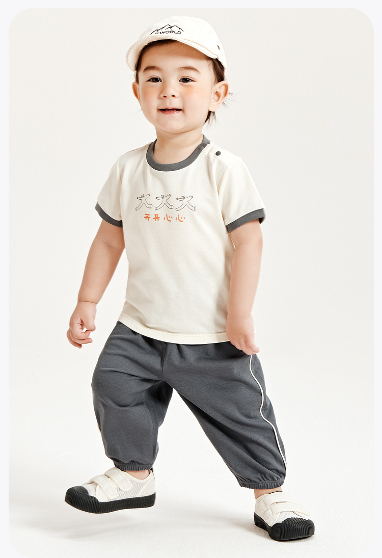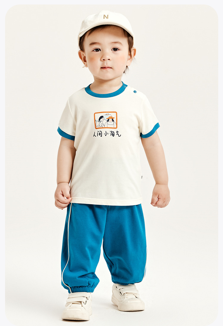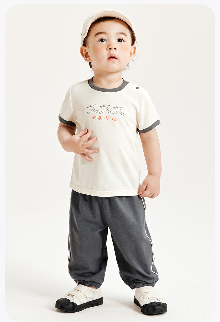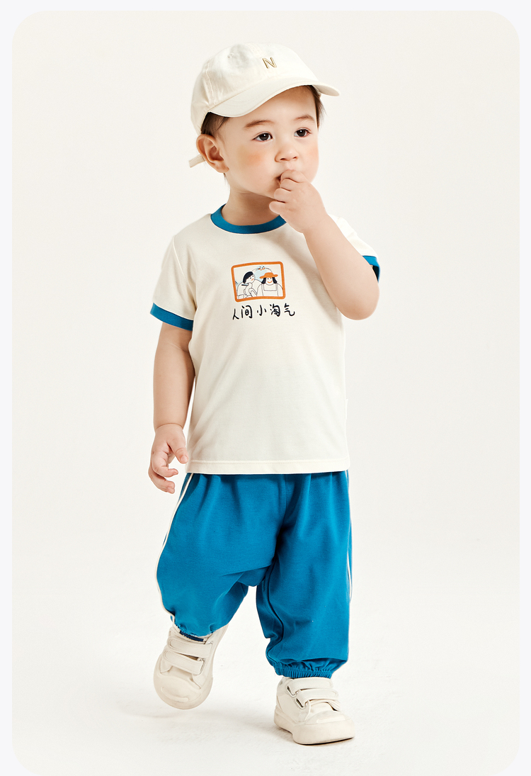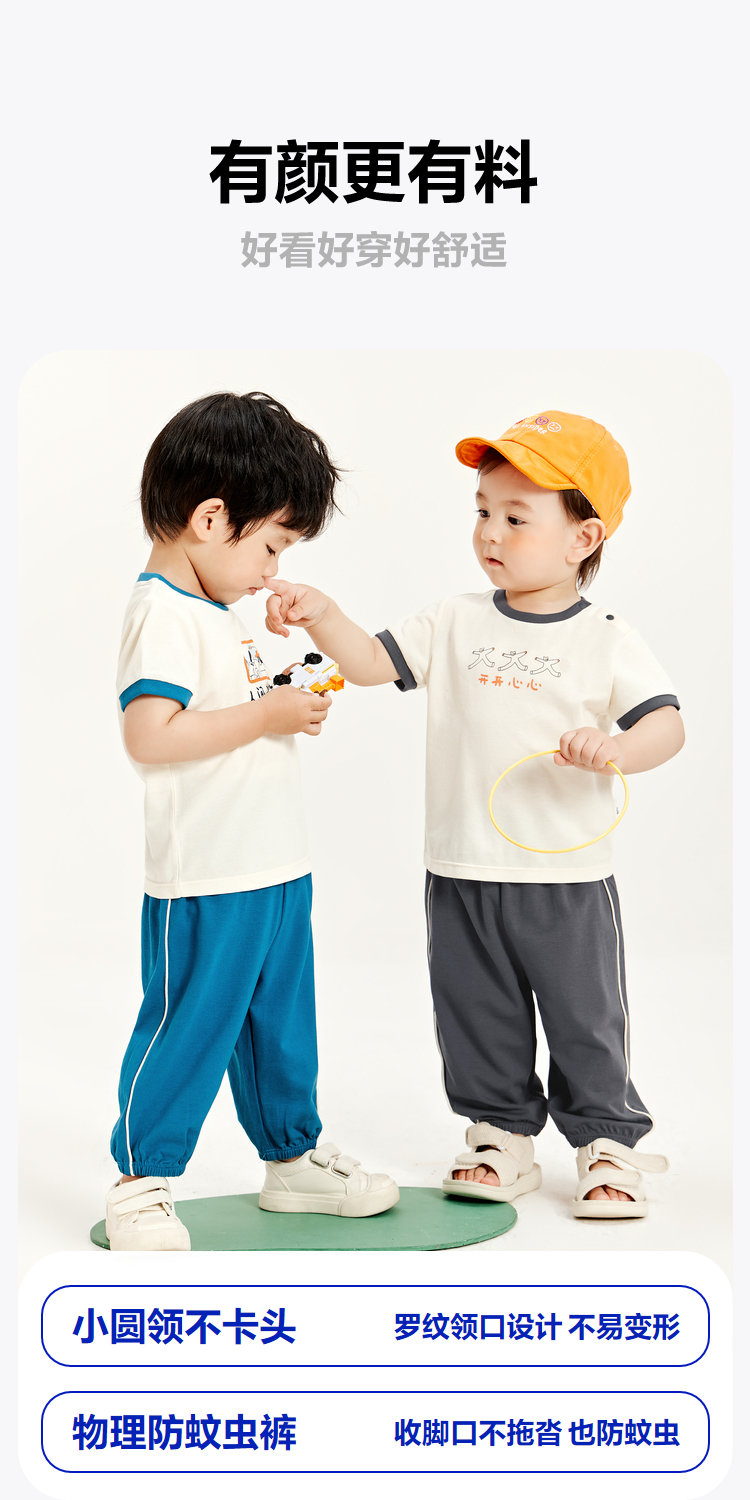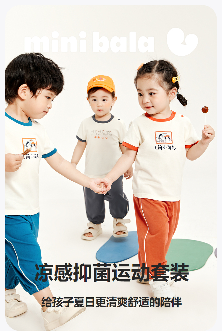 迷你巴拉夏季男童女童宝宝凉感抑菌套装舒适透气轻薄运动套装