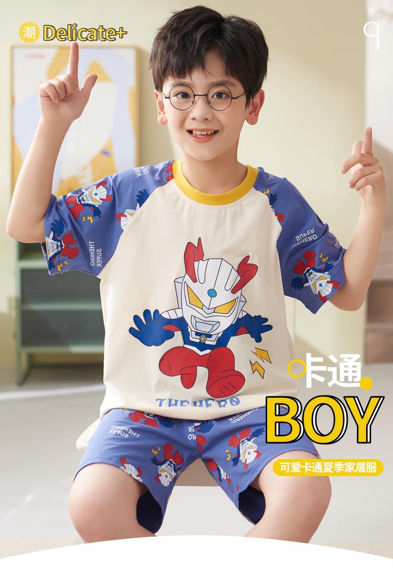 儿童睡衣夏季莫代尔冰凉短袖短裤小男孩中大童薄款男童家居服套装