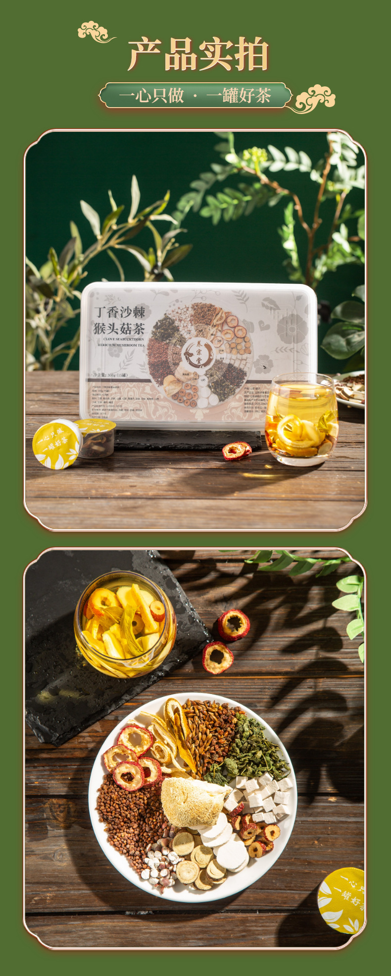 【每日一罐!谓您呵护】丁香沙棘猴头菇茶 15罐/盒 非养胃小罐养生茶 ,茶色馥郁透亮,开水冲泡或炖煮均可。ry