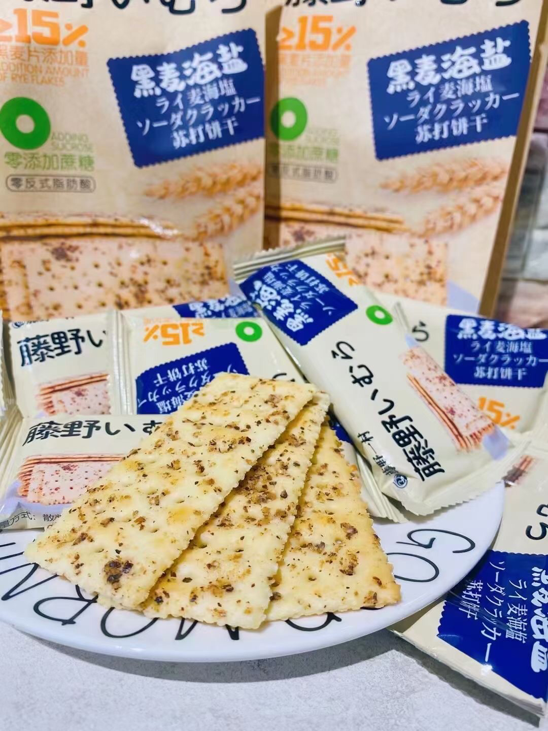 🥜藤野一村新品黑麦海盐苏打饼干🍪咸香酥脆!还添加了15%的黑麦粒肉眼可见富含膳食纤维0蔗糖0反式脂肪🏏独立包装 建议管理期的姐妹人手一箱📦低卡没负担 越嚼越香!