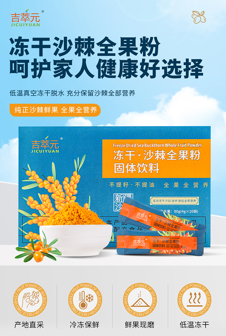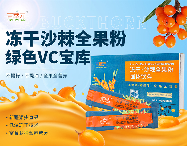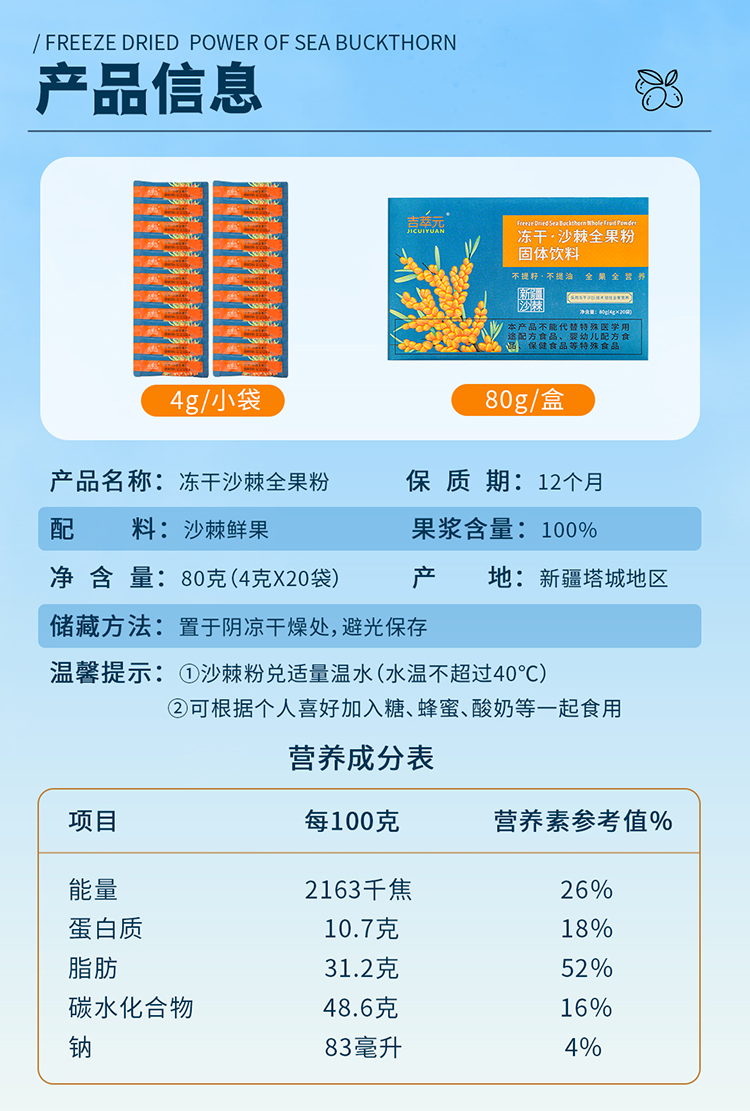 ⁴949元/11盒【新疆有机冻干沙棘全果粉】80g 不去皮不去籽不提油 加酸奶和蜂蜜/益生元味道更佳 4g*20条/盒 YC04-CRMM-JCYSC【HOT】