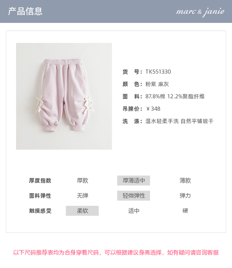 马克珍妮女童甜美蝴蝶结宽松灯笼裤 宝宝裤子卫裤秋装新品551330