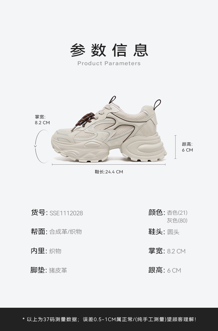 星期六26春新款复古运动网面增高老爹鞋SSE1112028