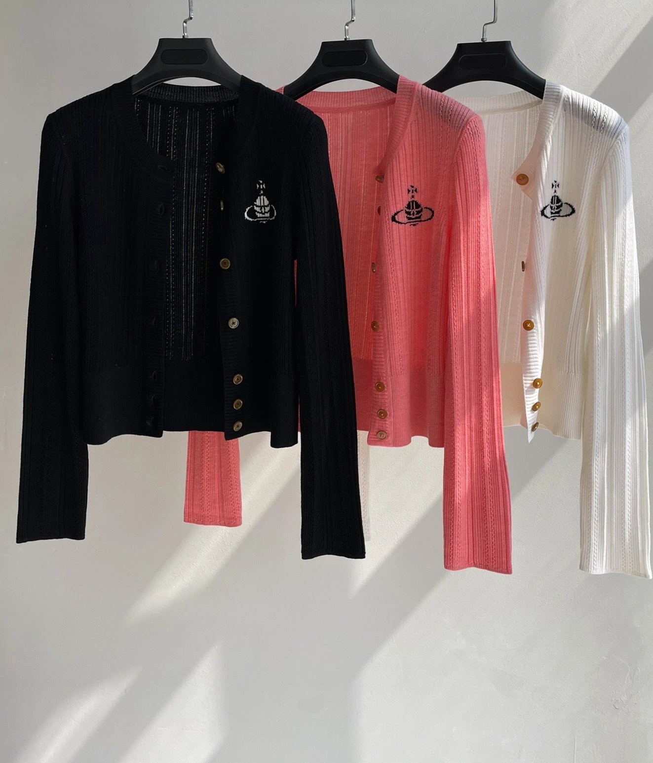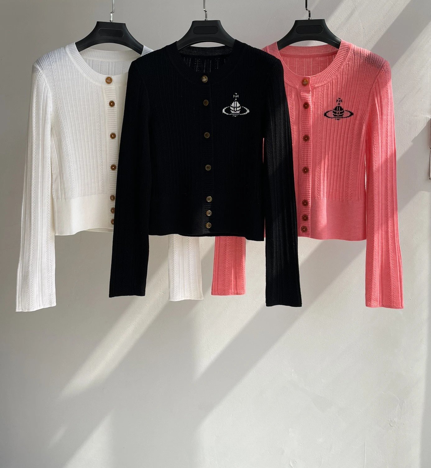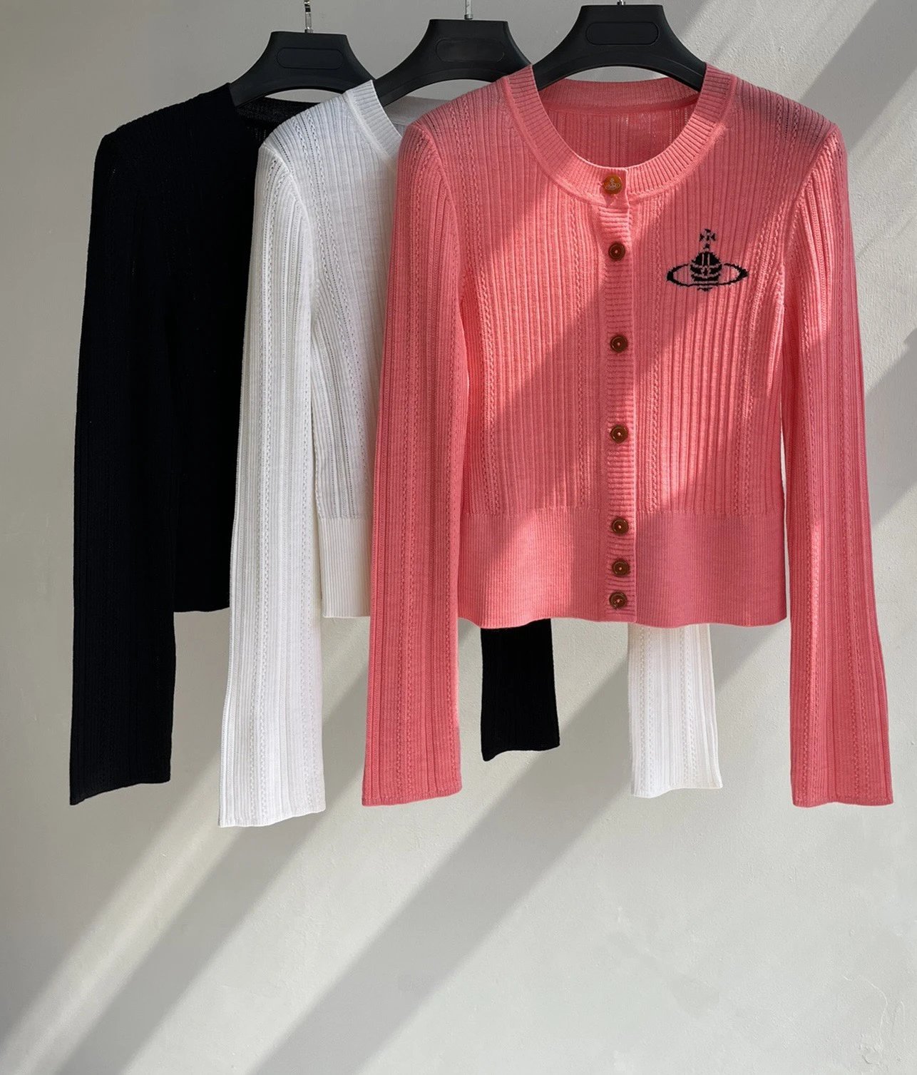 重磅渠道 土星圆领针织开衫 三色 细支羊毛坑条针织!
