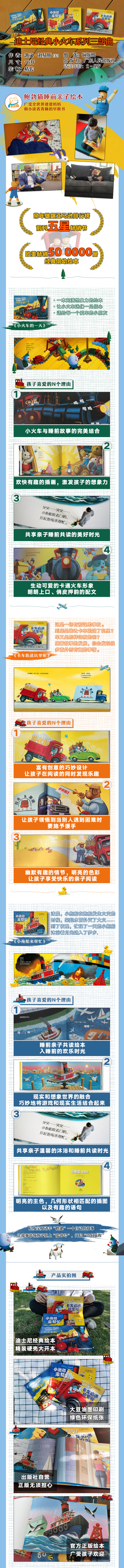 【海派董老师荐书】迪士尼小火车系列三部曲(买三本送玩具小车):小火车的1天+卡车陷进坑里啦+小拖船来帮忙
