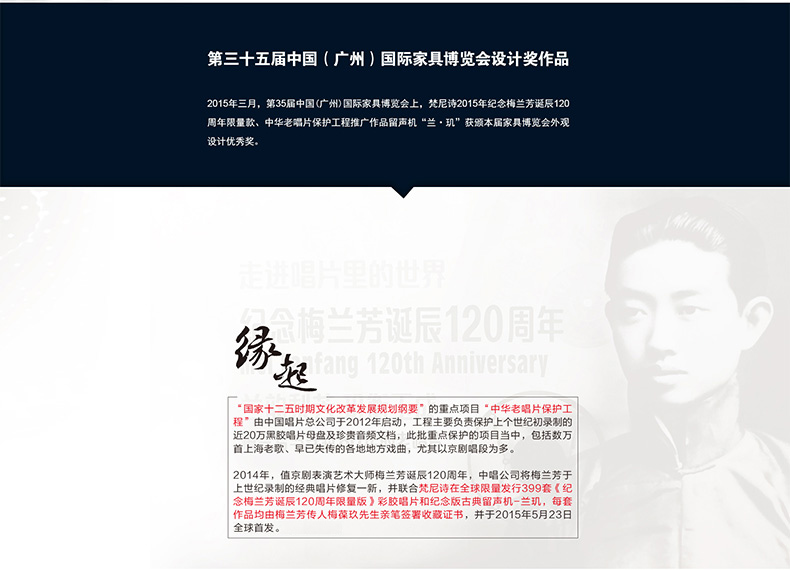 Fennessy/梵尼诗 梅葆玖珍藏梅兰芳120周年限量版大红酸枝留声机