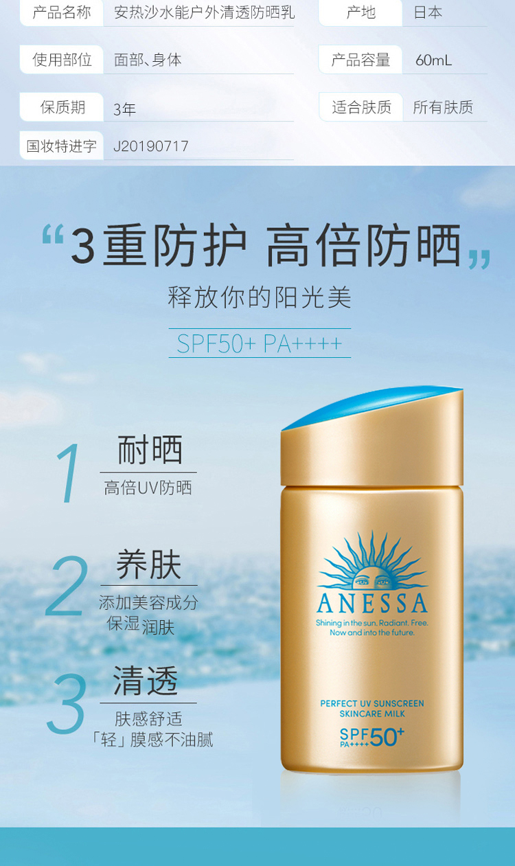 ANESSA安耐晒新款金瓶防晒霜60ml