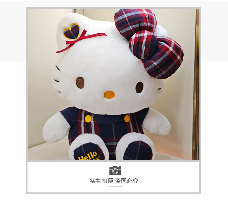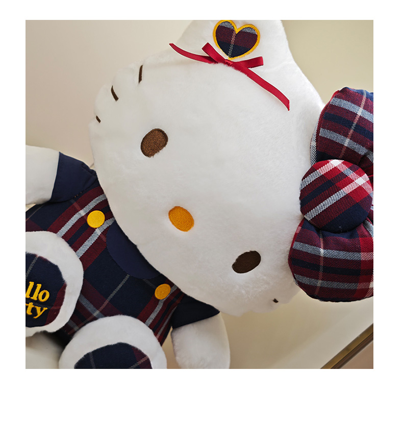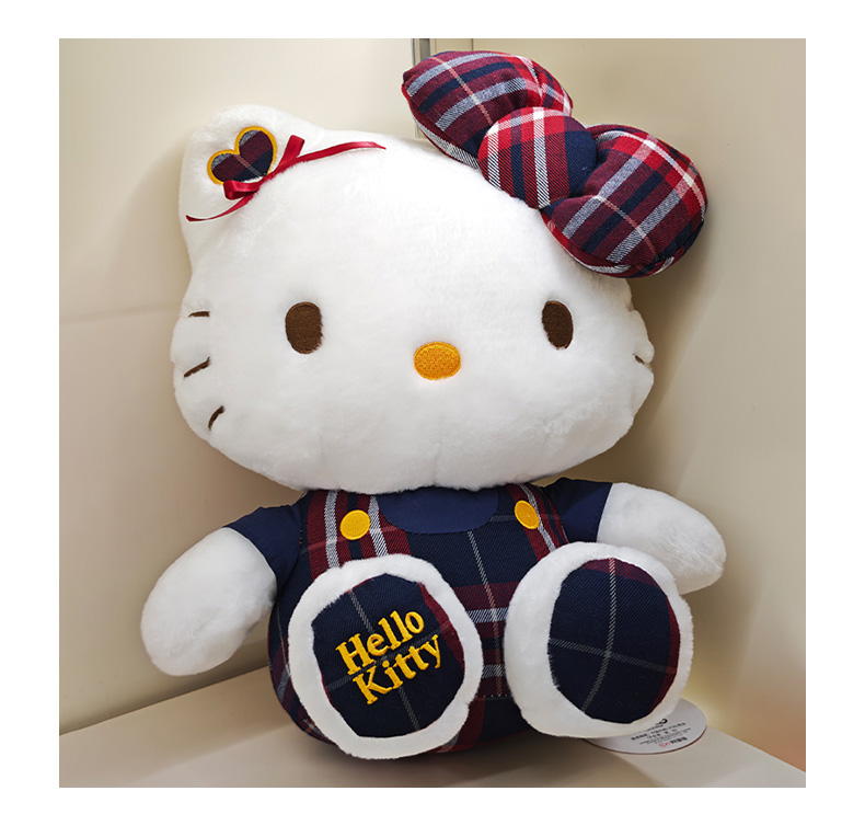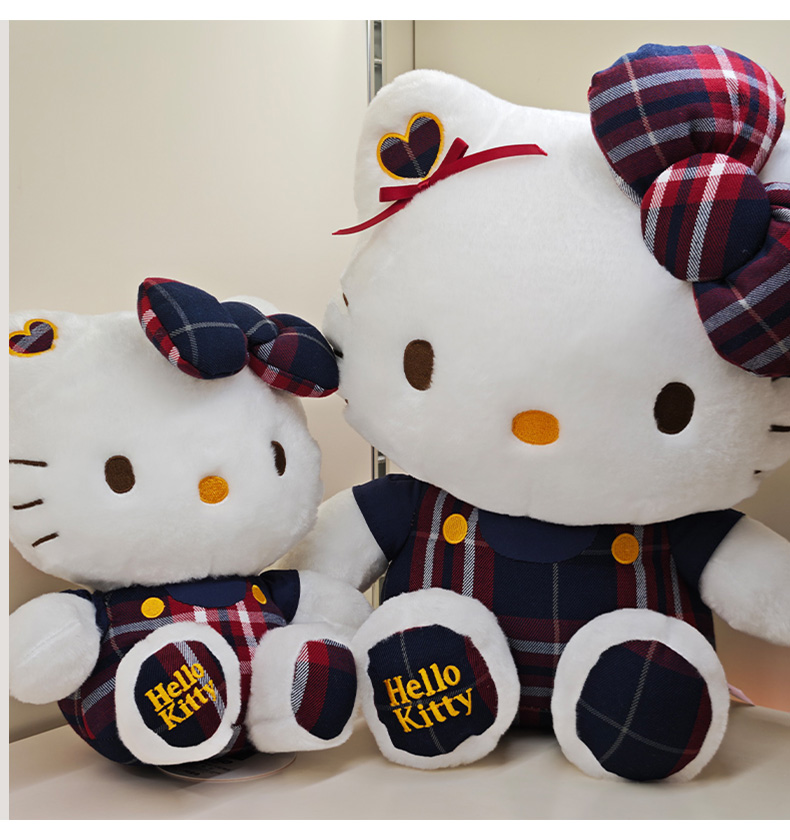 8寸学院KT可爱复古格子凯蒂猫hellokitty毛绒玩具生日礼物毛绒公仔-纪念日百货门店同款168097184