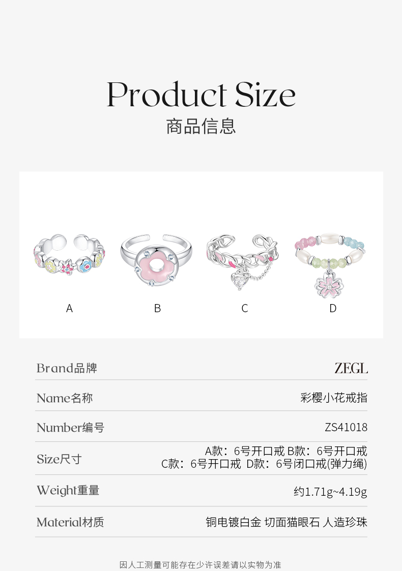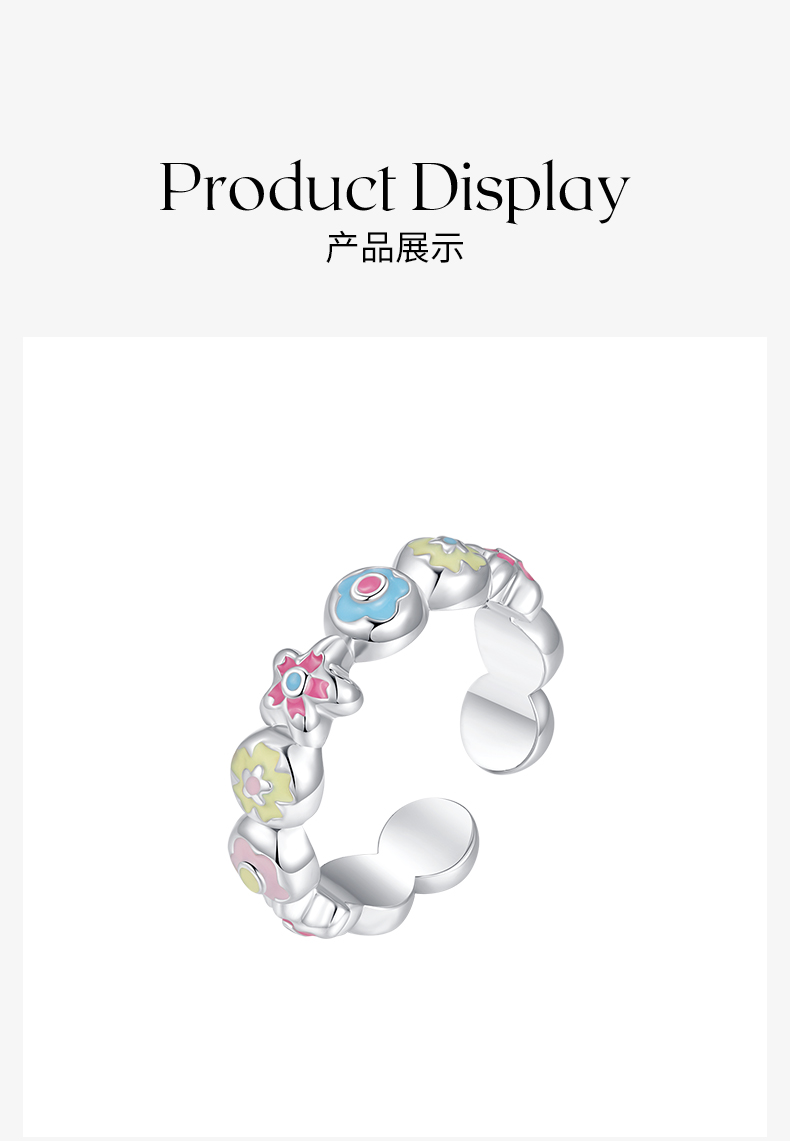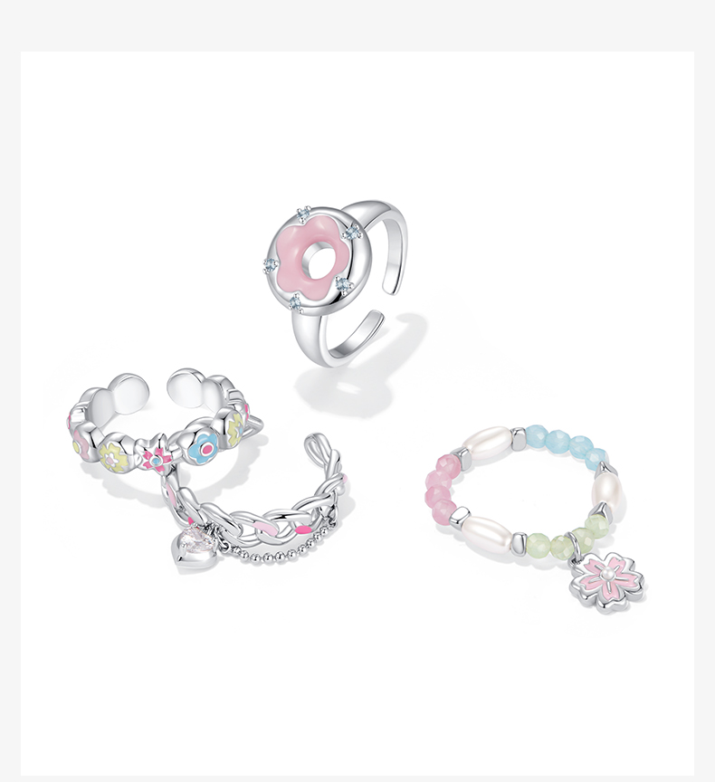ZEGL设计师樱花小彩串系列彩色戒指女小众设计2023年新款潮食指戒