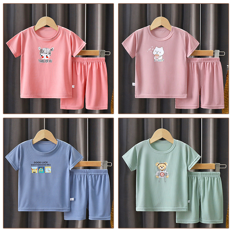 【49.9元任选2套】春夏新款中大童半袖短裤两件套 儿童冰丝短袖短裤套装 休闲裤套装
