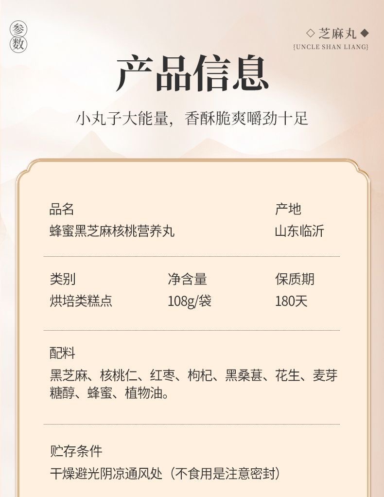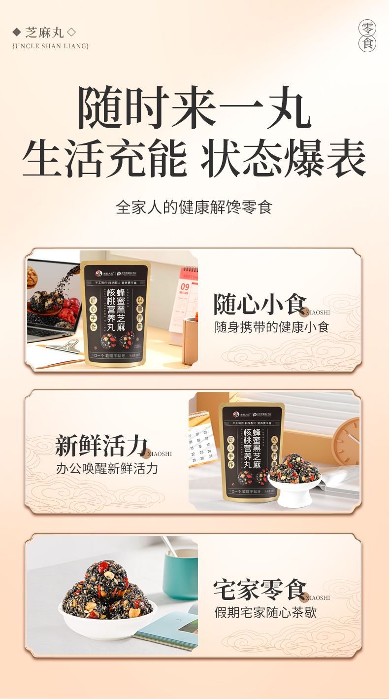 善粮大叔蜂蜜黑芝麻核桃营养丸12袋组合装