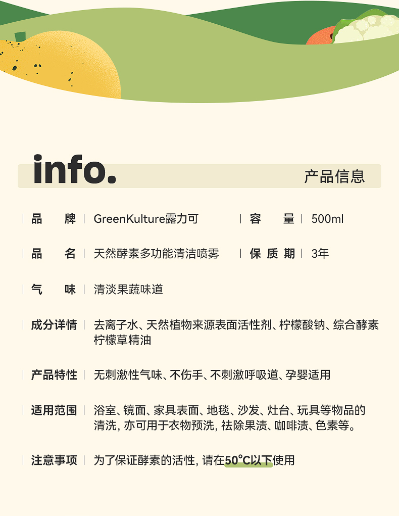 【品牌直发】GreenKulture露力可 天然酵素多功能清洁喷雾500ML