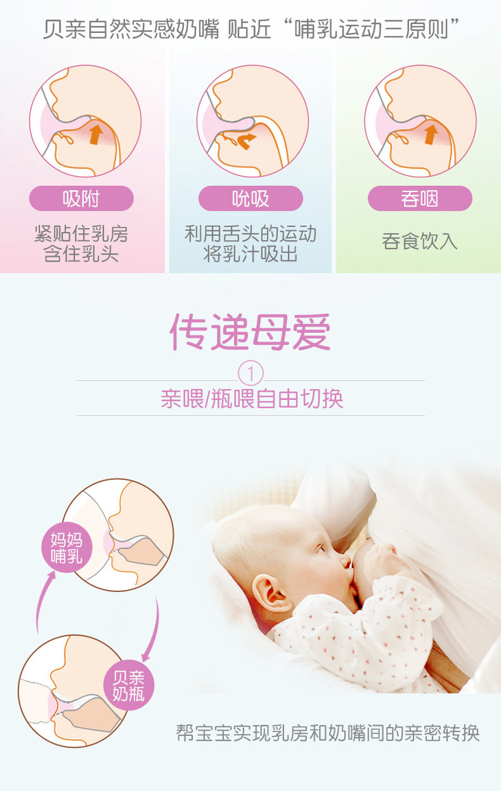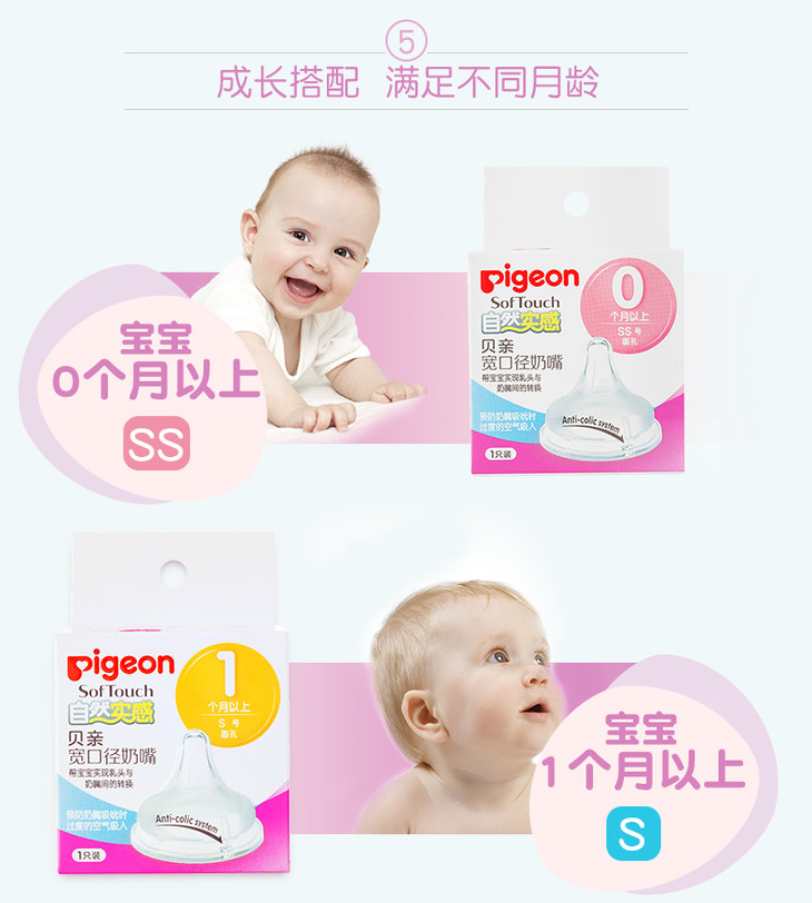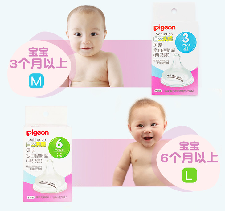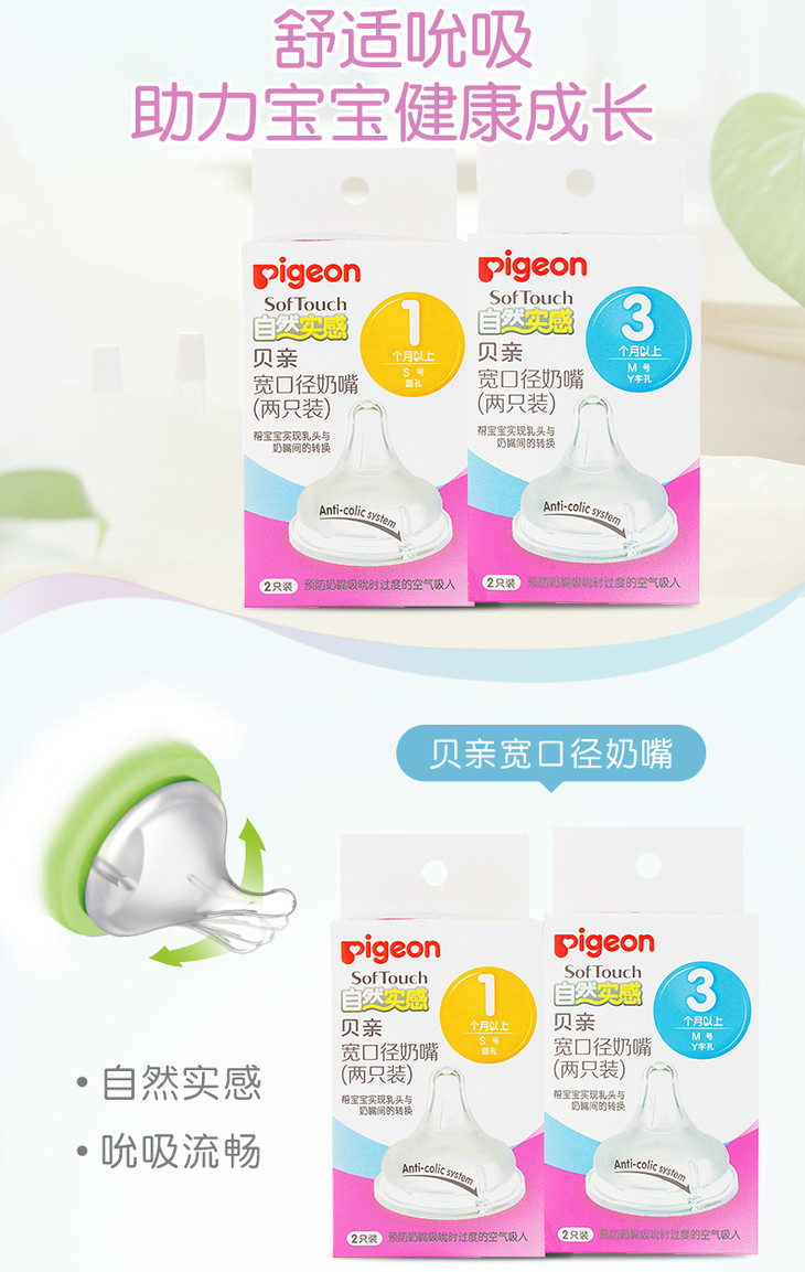 日本Pigeon贝亲奶瓶 贝亲硅胶仿母乳宝宝奶嘴 自然实感宽口径防胀气SS/S/M/L/LL/3L仿母乳奶嘴安全