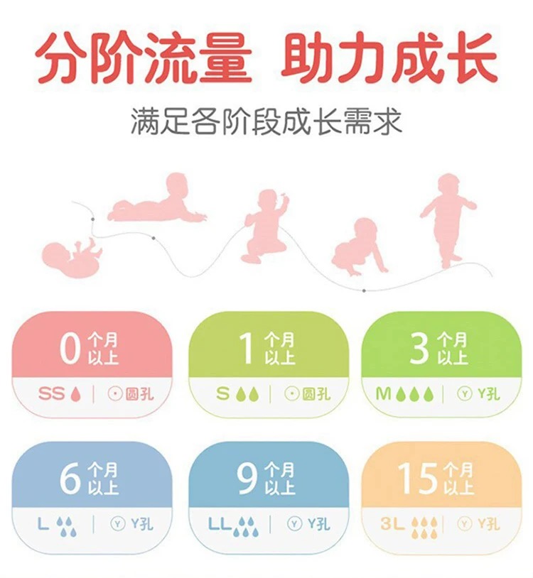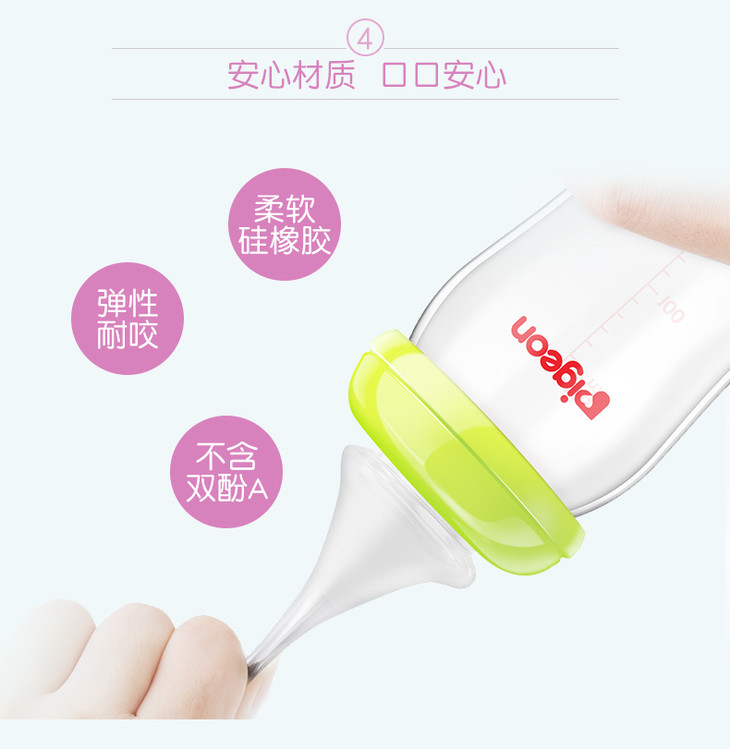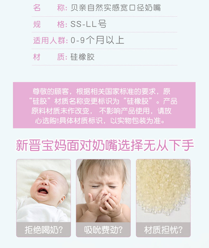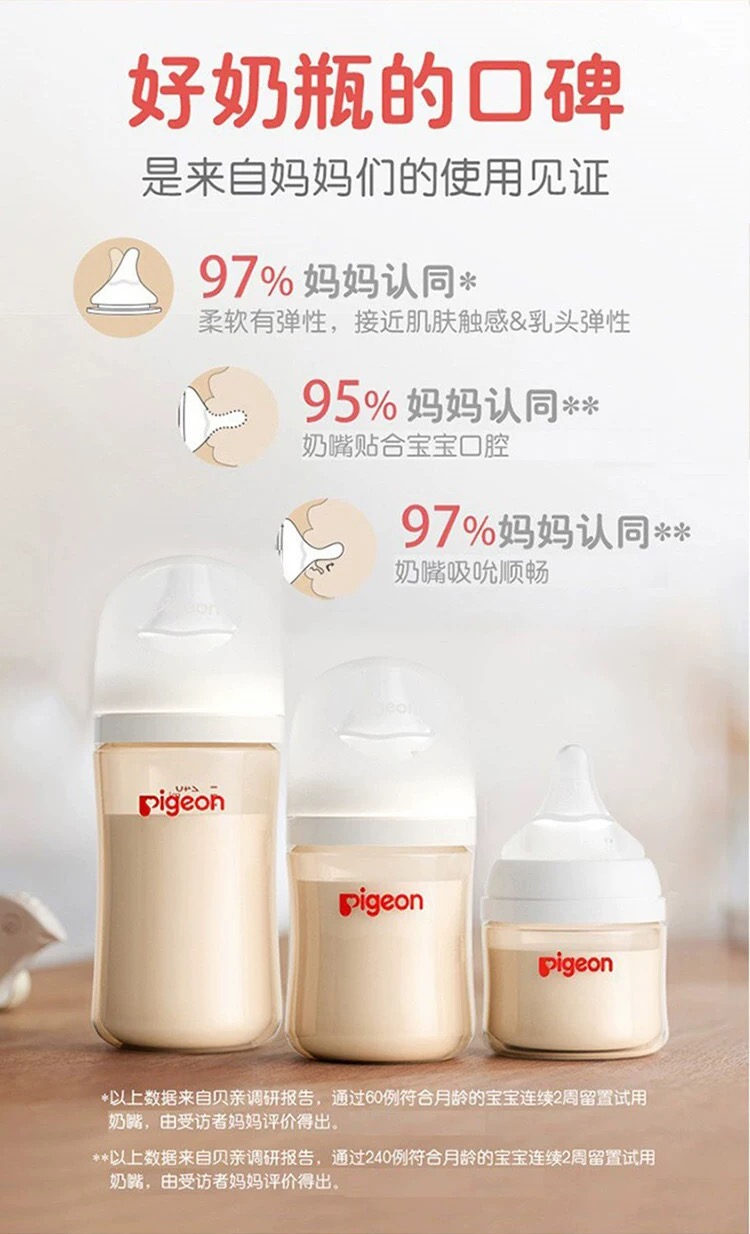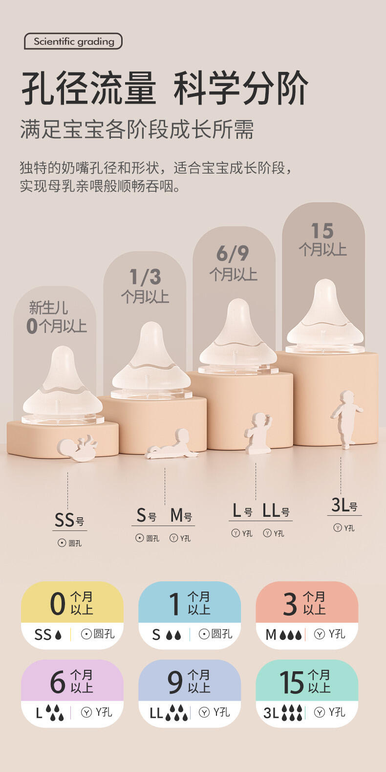 日本Pigeon贝亲奶瓶 贝亲硅胶仿母乳宝宝奶嘴 自然实感宽口径防胀气SS/S/M/L/LL/3L仿母乳奶嘴安全