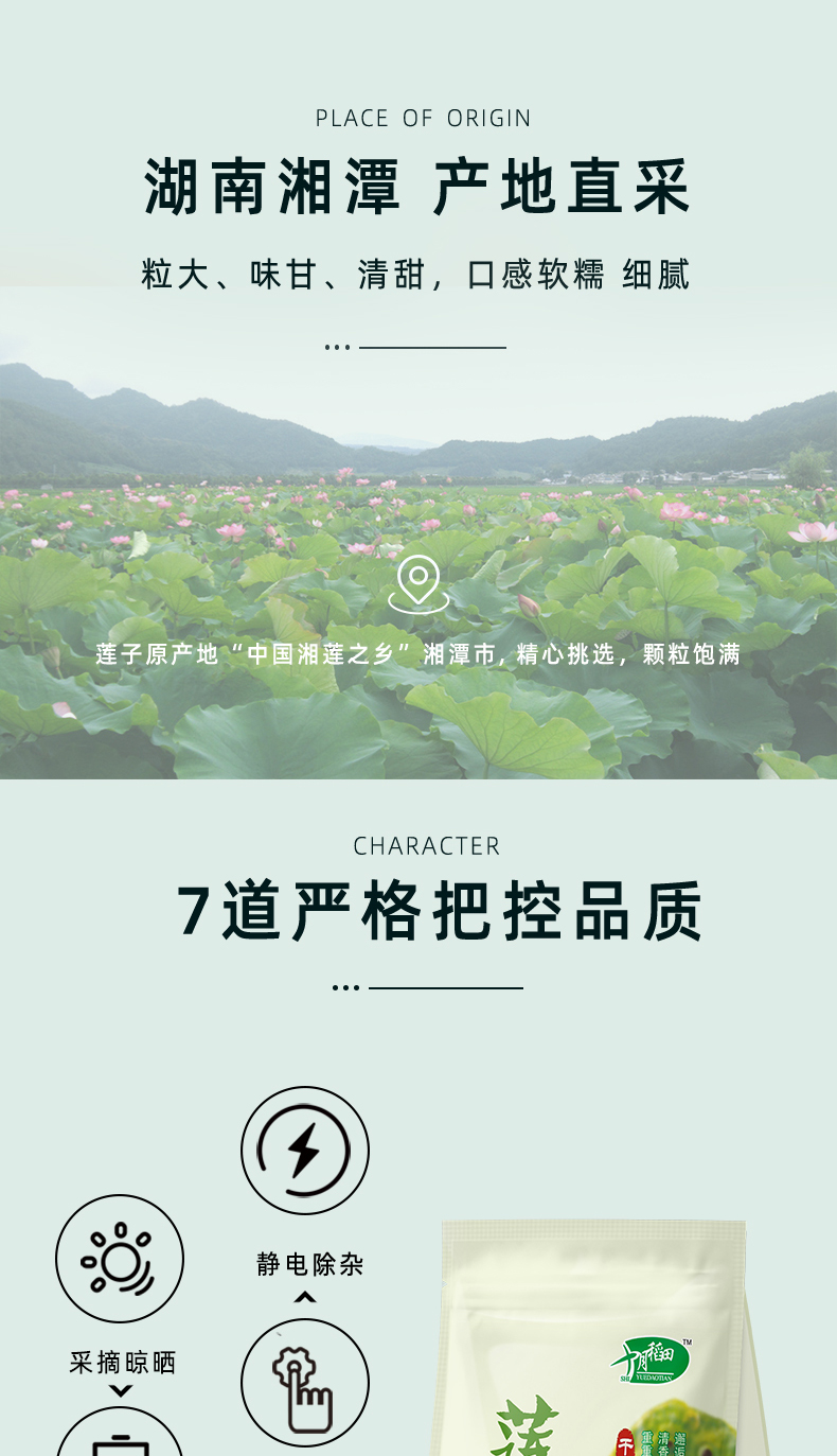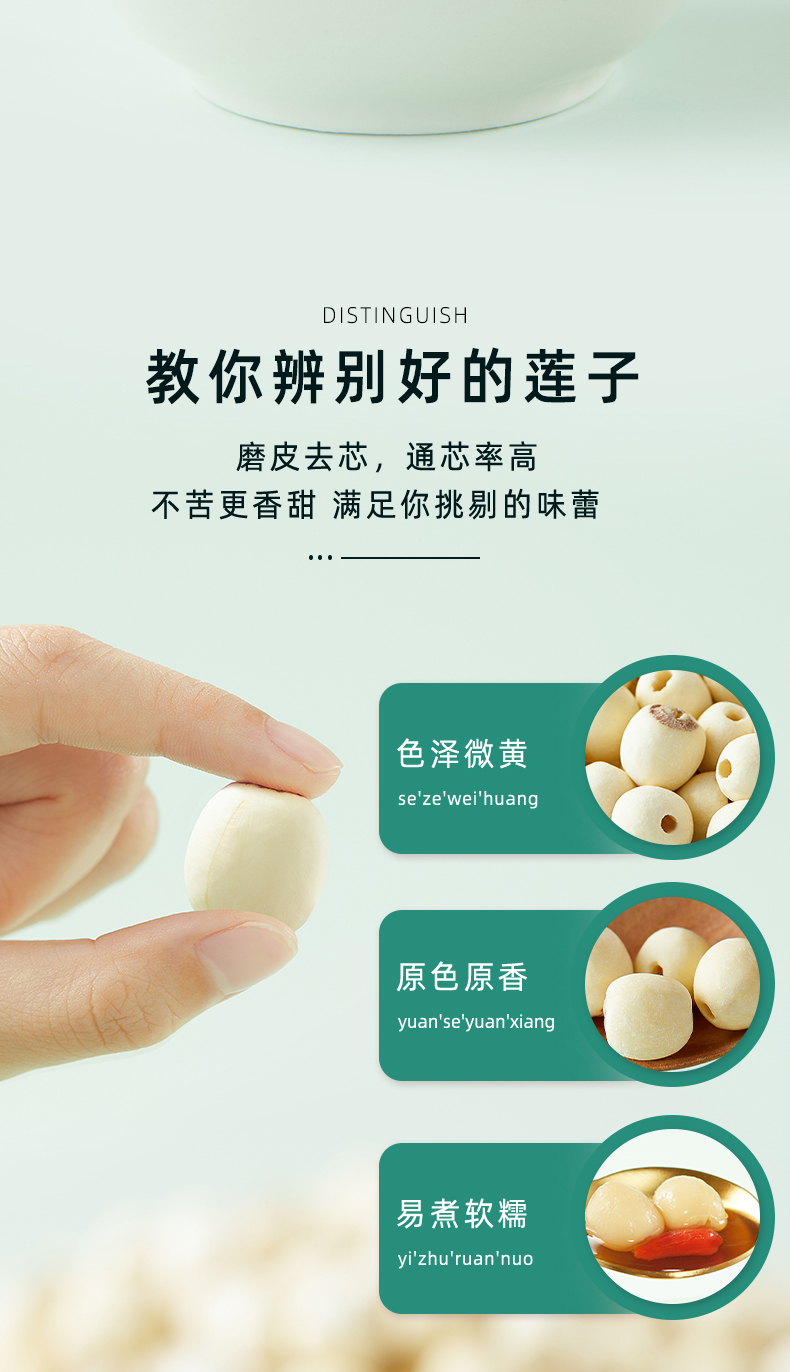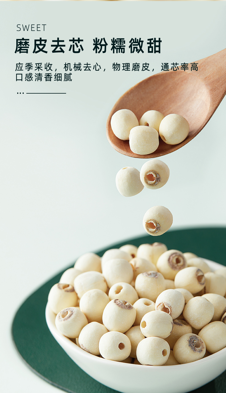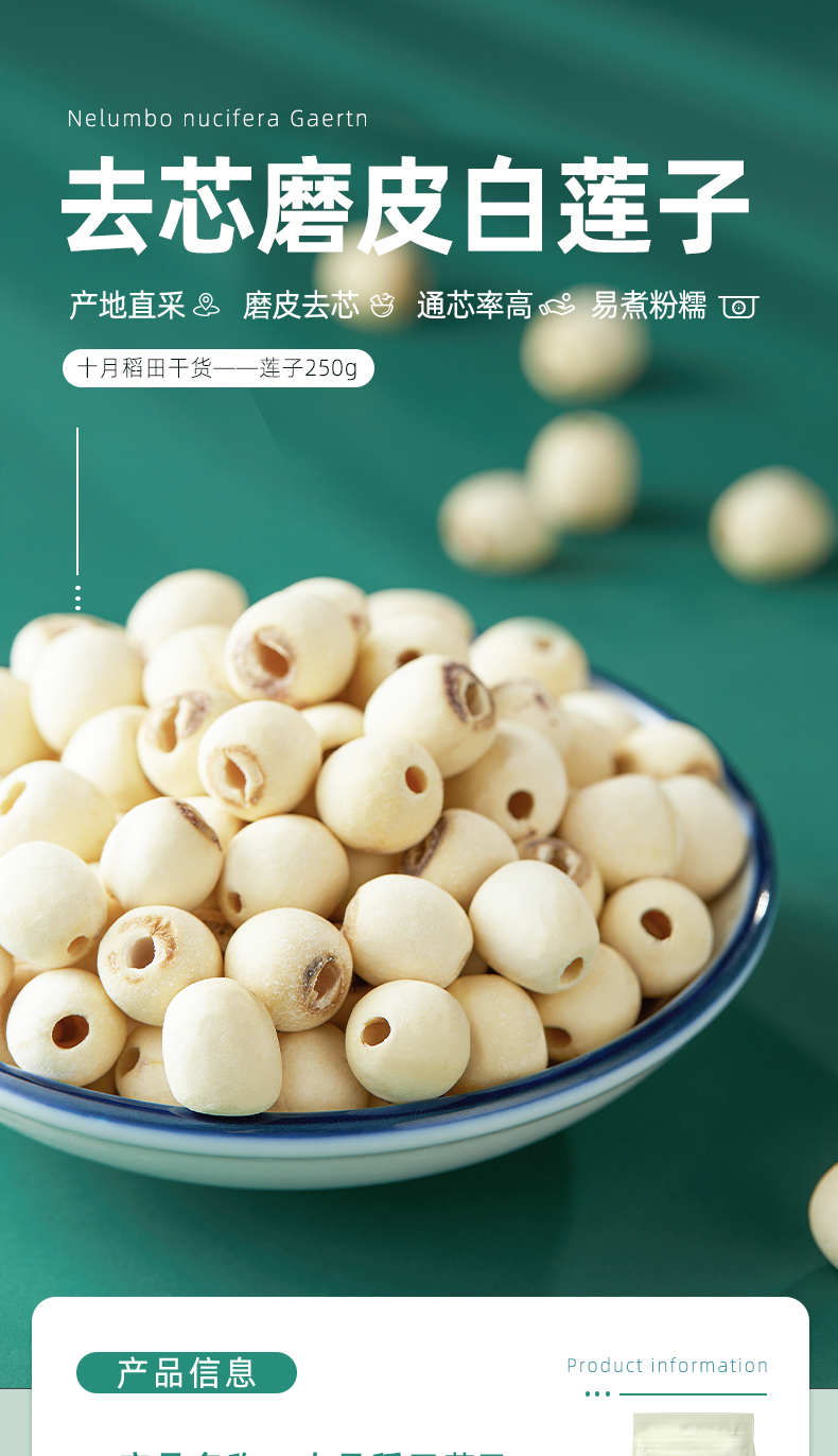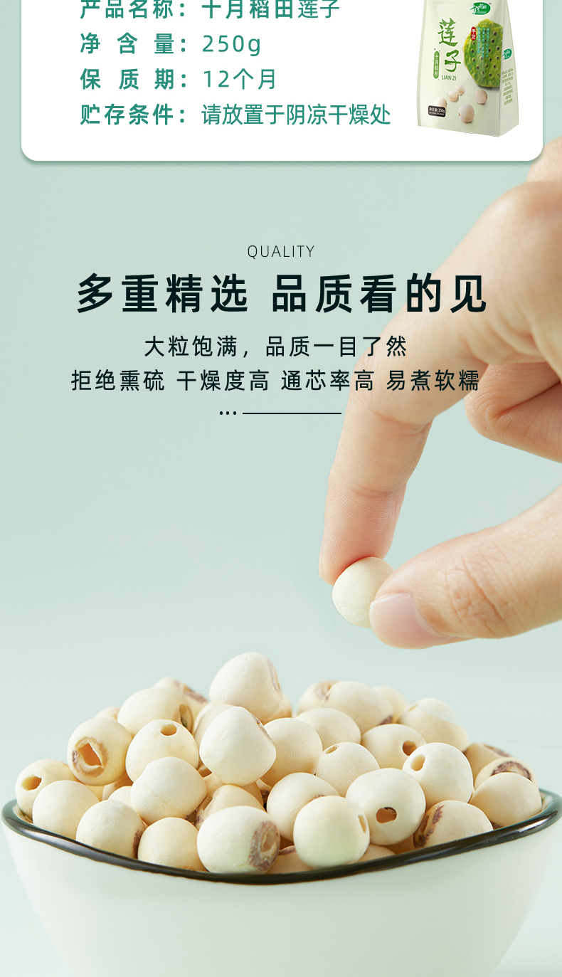 十月稻田 莲子 250g 湘潭去芯磨皮白莲子 干货 桂圆百合银耳羹煲汤食材