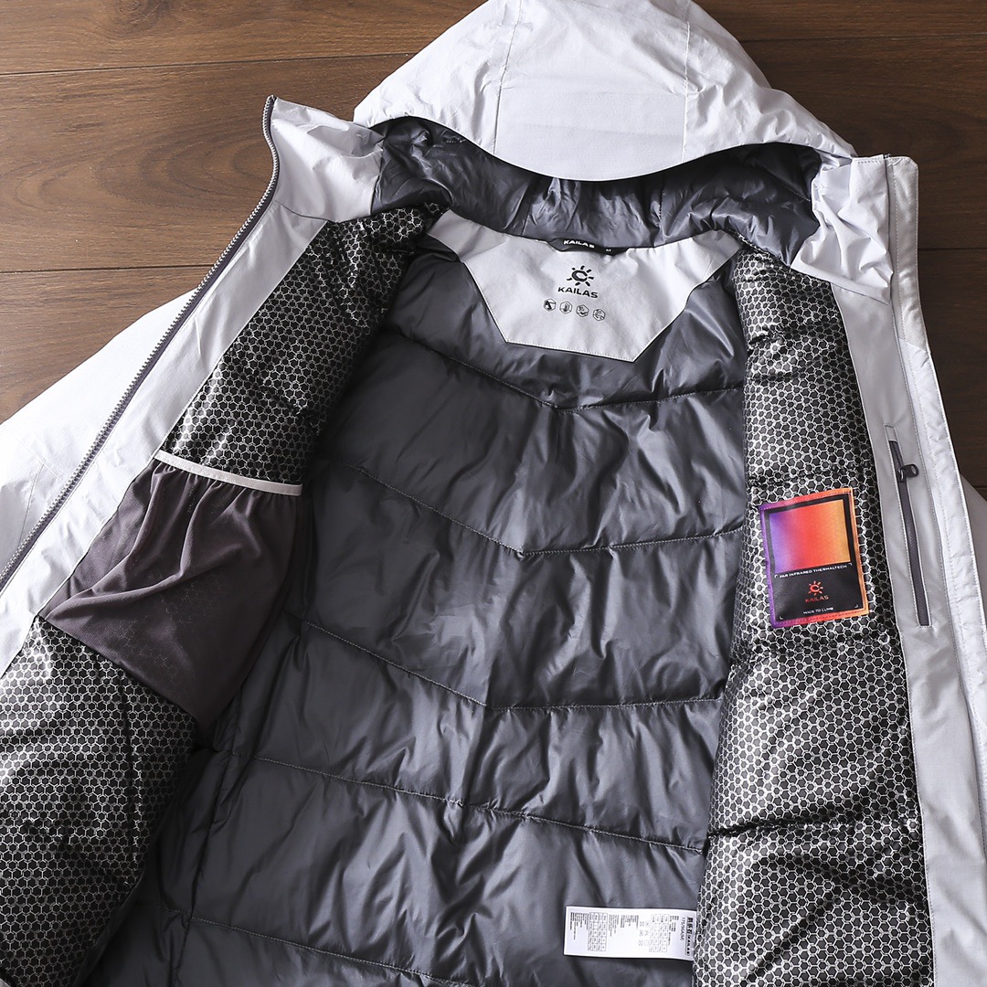 凯乐石阿斯本700蓬男士休闲户外连帽羽绒服外套!经典时尚款,客供Filter科技防风防水面料,内里90%灰鹅绒填充,搭配石墨烯胆布,轻盈蓬松,聚热锁温,保暖舒适!全身多处采用激光切割压胶工艺,胸前小标logo刺绣,精致饱满,腋下拉链开叉调节透气设计,魔术贴防风袖口,帽檐、下摆松紧抽绳调节,领口绒布拼接,做工细节都无可挑剔,无论日常休闲、登山滑雪都可轻松驾驭,喜欢的兄弟千万不要错过!