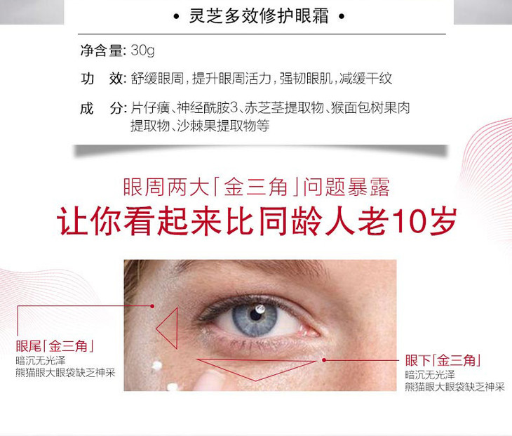 片仔癀 灵芝多效修护眼霜更换片仔癀灵芝臻颜淡纹眼霜,新旧版随机发货,以实际收到货为准,保证正品!