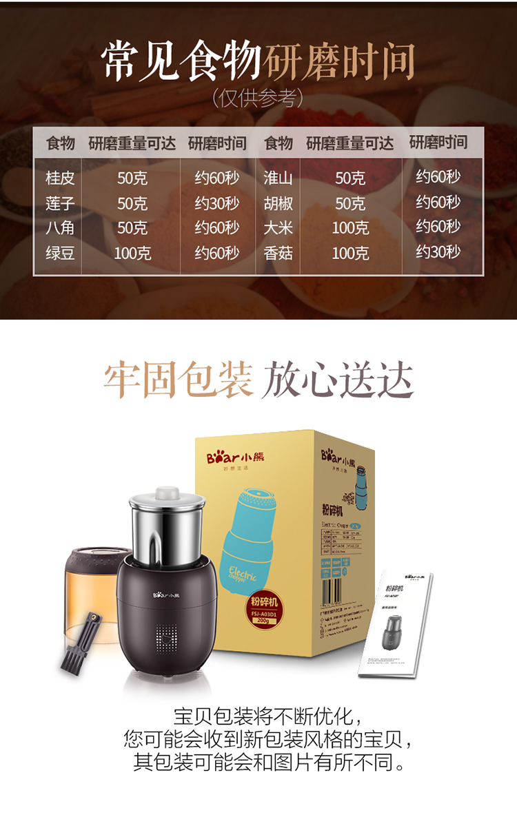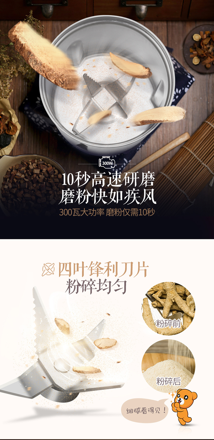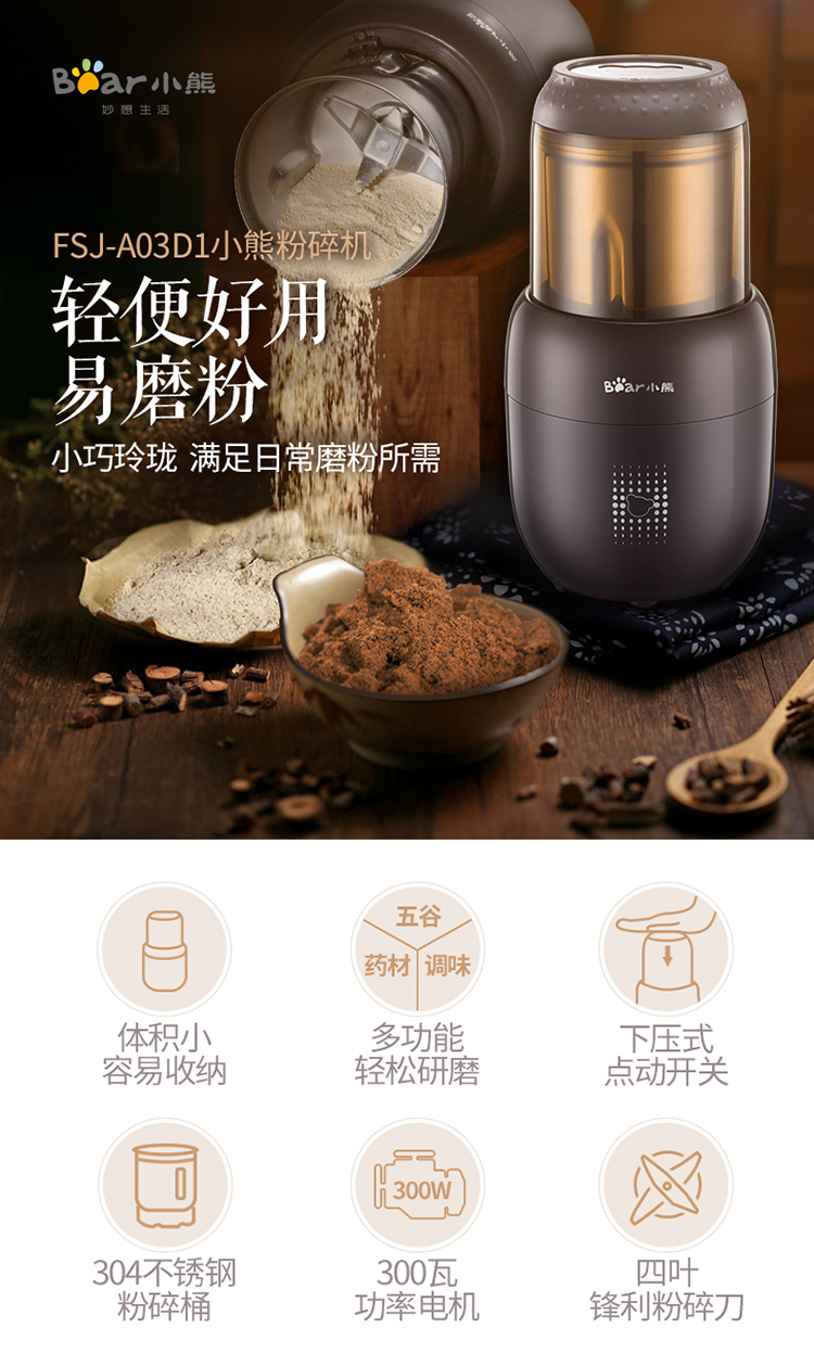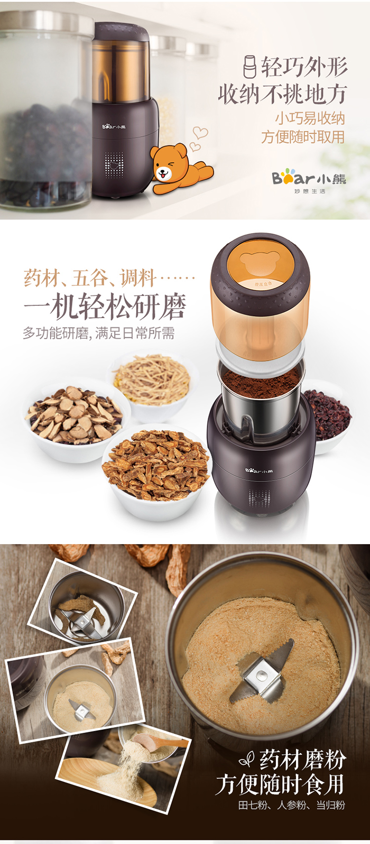 小熊(Bear)研磨机磨粉机中药料理机五谷杂粮干粉碎药材厨房家用小型粉碎机打粉机大容量FSJ-A03D1