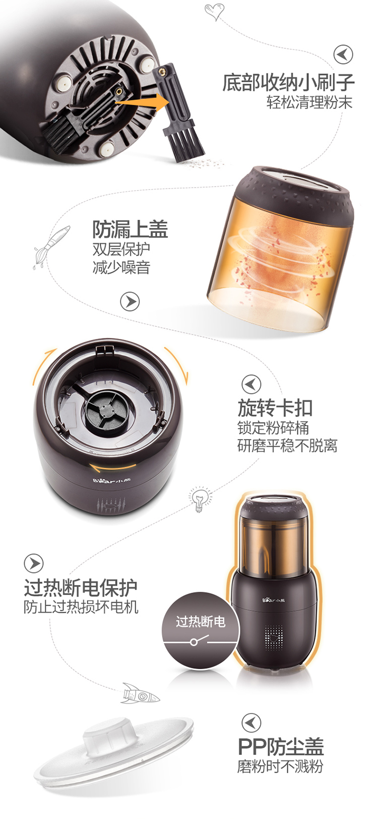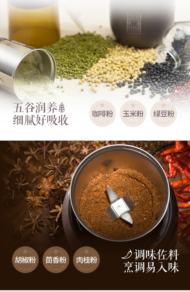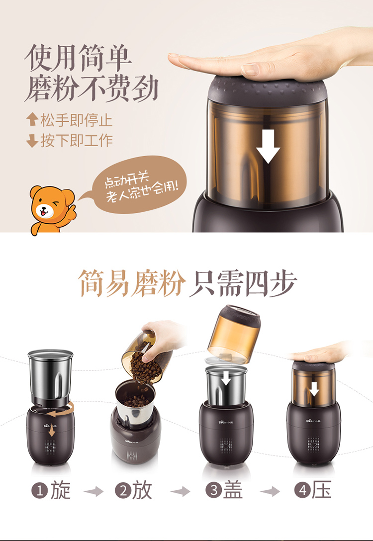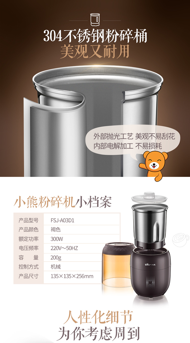 小熊(Bear)研磨机磨粉机中药料理机五谷杂粮干粉碎药材厨房家用小型粉碎机打粉机大容量FSJ-A03D1
