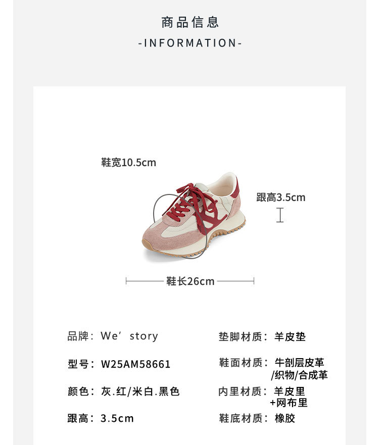 westory2025年春季新款休闲风厚底平跟舒适百搭阿甘鞋休闲运动鞋W25AM58661