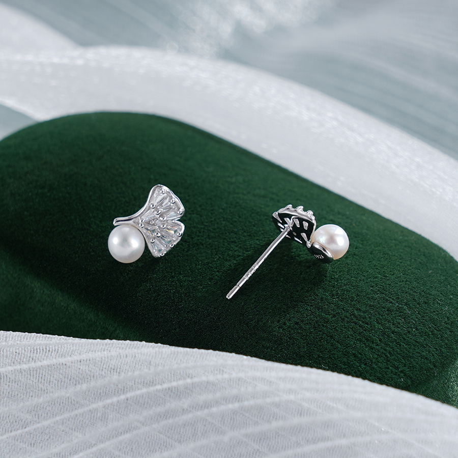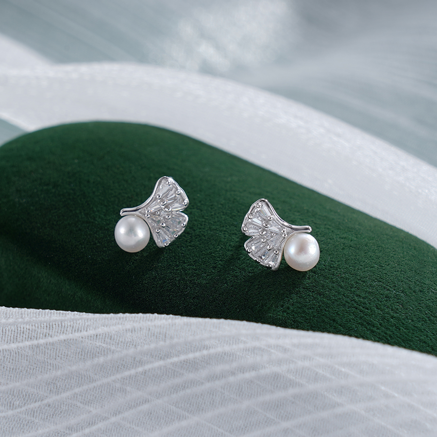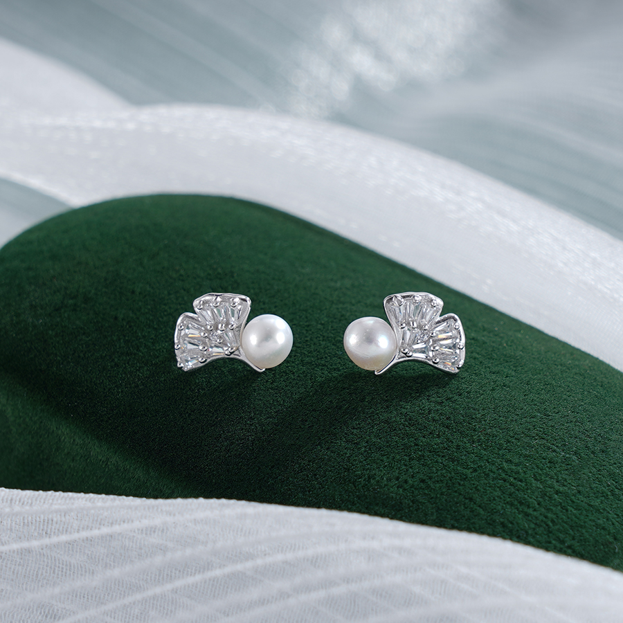 【寓意】:珍珠凝成于银杏叶之上,宛若晨露若坠未坠。佩戴于耳畔,在肌肤纹理间折射出温柔光晕,悄然烘托优雅气质。